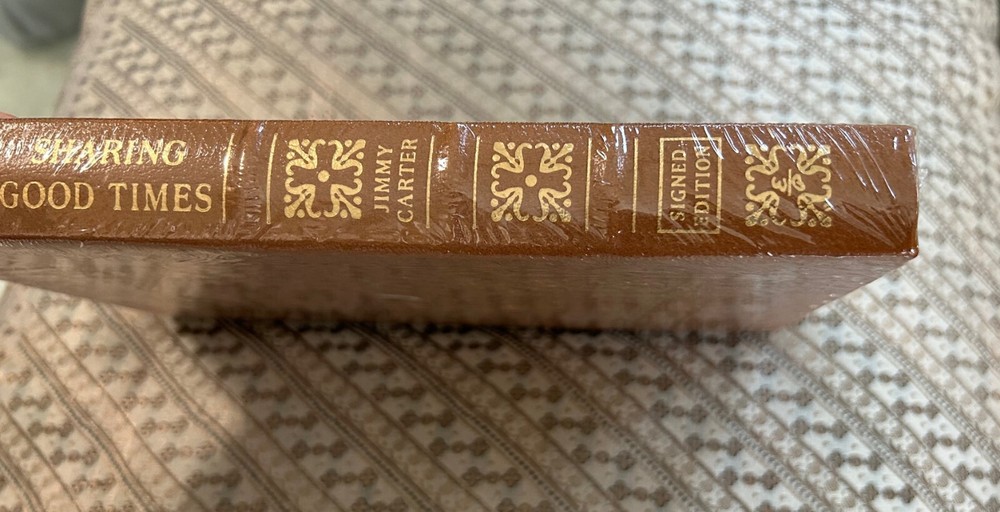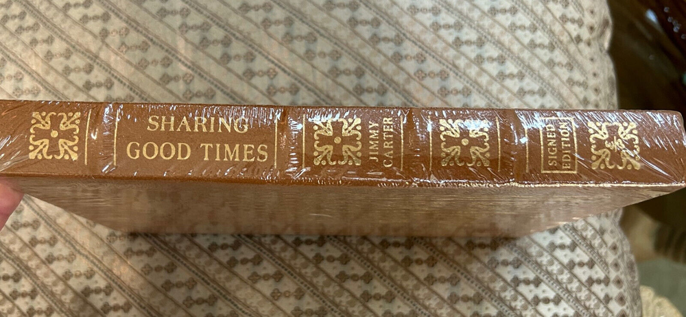 James Earl Carter Jr. October 1, 1924 - December 29, 2024, was an American retired politician who served as the 39th president of the United States from 1977 to 1981. A member of the Democratic Party, he previously served as the 76th governor of Georgia from 1971 to 1975 and as a Georgia state senator from 1963 to 1967. After leaving office, he remained engaged in political and social projects, receiving the Nobel Peace Prize in 2002 for his humanitarian work. " BRAND NEW FACTORY SEALED SHRINK WRAPPED " "SPECIAL LIMITED EDITION" "HAND AUTOGRAPHED SIGNED" copy of President Jimmy Carter's "SHARING GOOD TIMES". Published in 2004 . This rare beautiful hardcover is straight and square. The pages are crisp and clean. Features include Easton Press qualities: Premium Leather, Silk Moire end leaves, Distinctive Cover Design, Hubbed Spine, Accented in Real 22KT Gold, Satin Ribbon Page Marker, Gilded Page Edges, Long-lasting, High-Quality Acid-neutral Paper, Smyth-sewn Pages for Strength and Durability. An increasingly difficult title to find signed, in such fine condition. Please view all pictures for details as part of the description and bid with confidence. **100% MONEY-BACK GUARANTEE AS LONG AS THE FACTORY SEALED SHRINK WRAP ** **HAS NOT BEEN OPENED OR ALTERED**