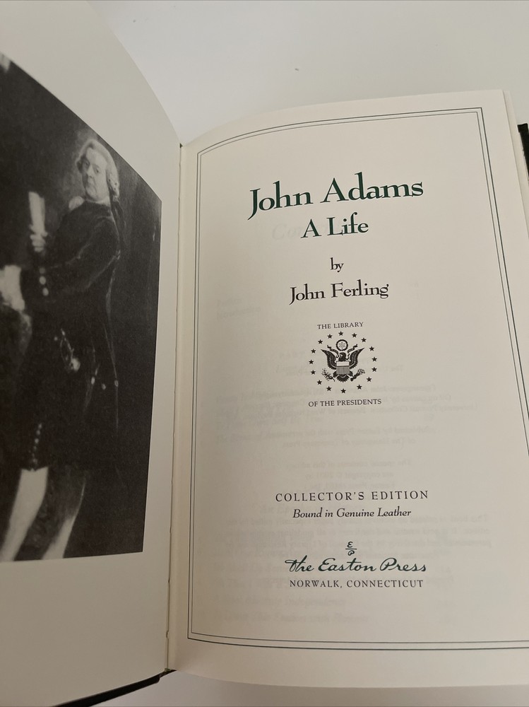 JOHN ADAMS by John Ferling Bounded in Genuine leather Gilded pages ends Easton Press, 2001 Library of Presidents Book in very good condition. Pages clean and crisp, only flaw it has small dent on gilt (review picture 5).