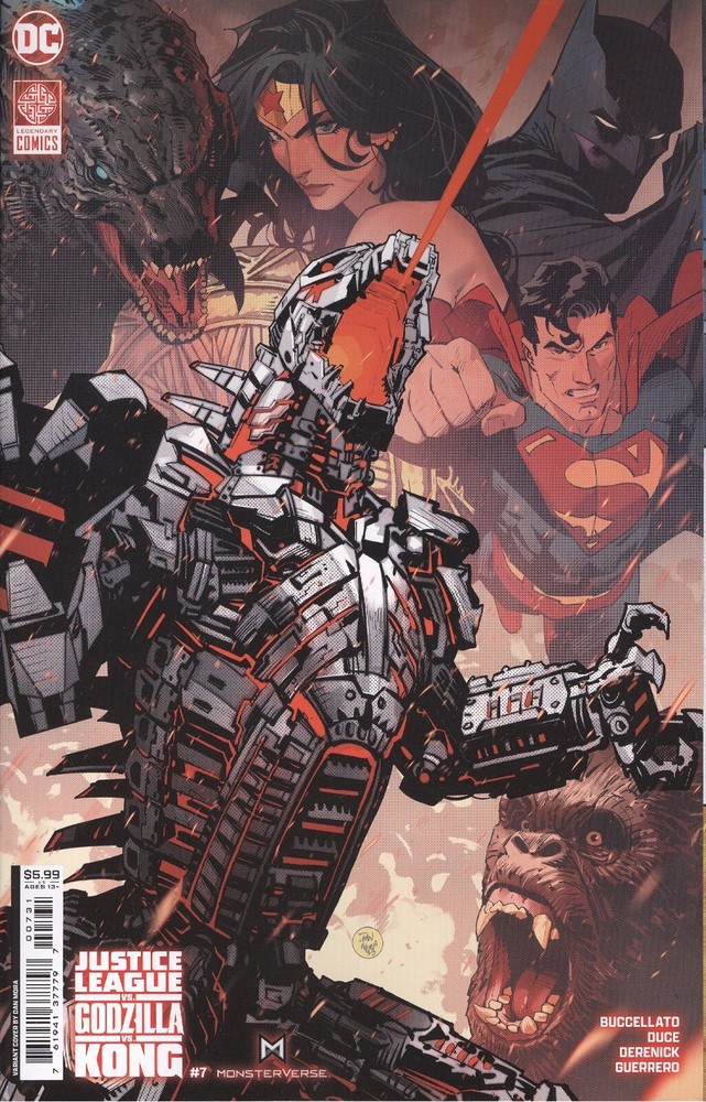 JUSTICE LEAGUE VS GODZILLA VS KONG #7 COVER C DAN MORA CARD STOCK VARIANT Writer: Brian Buccellato Artist: Christian Duce, Tom Derenick Cover Artist: Dan Mora THE BEST-SELLING SERIES REACHES ITS TITANIC CONCLUSION! Two worlds face annihilation in an all-out war between the DCU and Legendary's MonsterVerse! With the help of Godzilla and Kong, can the Justice League win a battle against a reformed Mechagodzilla and a new, even more deadly, hybrid Titan--a by-product of two worlds, the likes of which neither universe has ever seen! Books are VF/NM or better. All comics are new, never read, and come bagged and boarded. All comics are first printings, unless otherwise noted. As of February 5th, 2025, we ship out four days a week. Wednesday through Saturday. Any item purchased Saturday afternoon through Tuesday will ship out on Wednesday. Items purchased on Wednesday through Friday will ship the same or next day. Shipping Charges: We recommend shipping via First Class Mail or Priority mail. However, we do offer book shipments via Media Mail which may take 1 to 2 weeks to arrive on average (and often can take over a month). Media mail is shipped uninsured. If you wish the shipment to be insured, please choose the Priority Mail option for shipping. Please feel free to combine multiple purchases to save on shipping. Double sized or larger comics, as well as magazines, count as two comics in terms of shipping costs. First Class mail is for up to 3 regular sized comics. Shipping is $6.99 for the first book and 50 cents for each additional book to cover postage and shipping supplies. Please make sure to message us when checking out that you wish to have the books shipped by First Class mail so we may refund you the difference in shipping charges. First Class Mail is uninsured. Priority Mail is $9.99 for the first comic book and $1.00 for each additional comic book to cover shipping supplies and postage with a maximum shipping charge of $14.99. Priority Mail for Trade Paperbacks and Hardcovers are a flat rate of $9.99 for those that will fit into a Priority Mail legal size envelope. Any order that will not fit into the flat rate envelope will have a flat rate of $14.99. If you choose to ship via Priority Mail or First Class mail, please pay the $14.99 Priority rate and we will refund you the shipping difference based on how the books will ship. If the shipment will not fit into a USPS Flat envelope, the books may ship in a box via USPS Priority Mail, UPS Ground, or Fedex Ground for the flat rate of $14.99. All Priority Mail, UPS, and Fedex shipments are shipped insured. Media Mail is a $5.99 for the first comic and 25 cents per each additional comic or $2.00 for each additional trade paperback or hardcover with a maximum shipping charge of $14.99. Media Mail orders that hit the flat rate shipping of $14.99 wil ship via Priority Mail, UPS Ground, or Fedex Ground. Since we offer a few choices for shipping, the eBay checkout will only cap the basic media mail rate at $14.99. To get this rate, you must choose the Promotional Shipping Service option during checkout. If you are paying for Priority Mail and there are not enough items in your cart for the promotional rate at media mail, please pay for the Priority Mail option and we will refund you back the difference from the $14.99 flat rate. All shipments of up to eight comic books are shipped in Gemini Mailers. Shipments of up to 20 books are shipped in Diamond T-Mailers. Orders of 20 or more comics are shipped in a box. Trade Paperbacks will ship in an appropriately sized mailer or box depending on the size of the book or books.