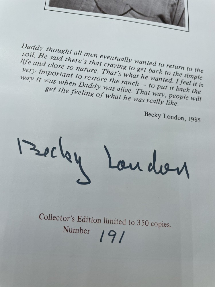 Jack London Ranch Album signed 191 of 350 Becky London. There are a couple small marks on the cover. Very clean copy. Please see pictures. Shipped promptly with care. Shipped with USPS Media Mail.