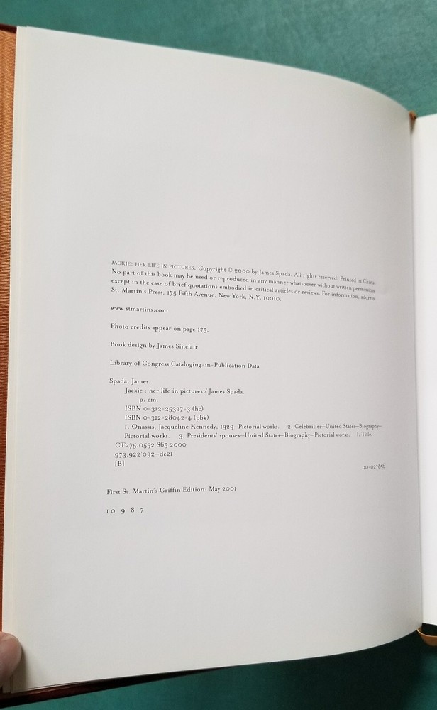Jackie Her Life In Pictures Easton Press Genuine Leather Bound 2001 Hardcover. Original burgundy genuine leather bound hardcover with gilt titles/decorations/page edges and silk moire endpapers/ribbon marker is complete and in excellent condition with no writing, tears or major creases. Cover in great shape. Binding tight and pages clean with no unpleasant odors. Scarce and collectible!