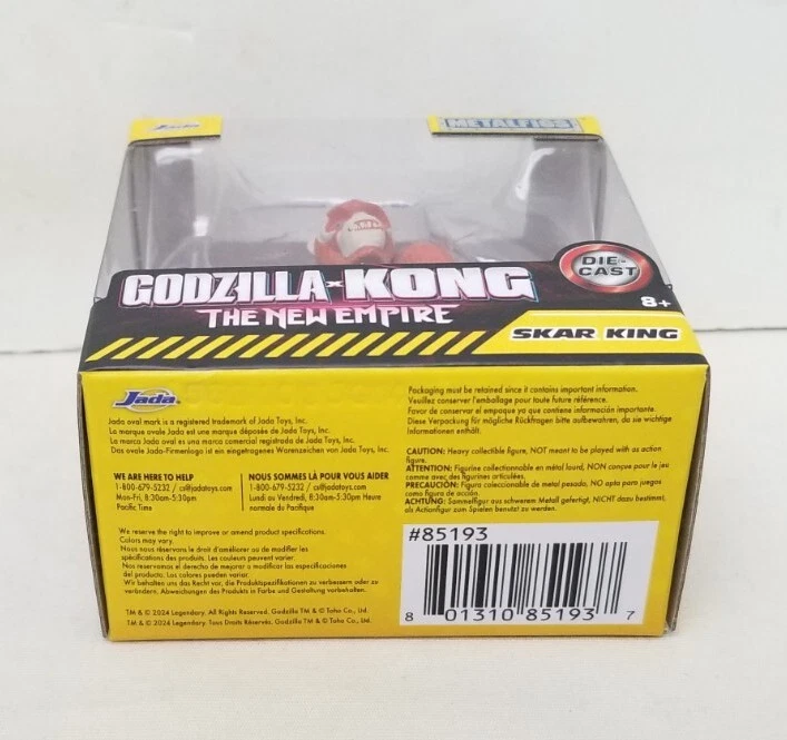 (2024) Jada Toys 2.50" Die-Cast Godzilla X Kong: The New Empire Walmart Exclusive "Skar King" Metalfigs Figural Keychain : The item is in ( PLEASE READ ) brand new never been removed from the box packaging w/ minor wear present from shelf life / store employees handling (SEE PICTURES FOR CONDITION ISSUES) . Features : Walmart Exclusive Measurements : (box): 3.25 inches in H, 3.25 inches in L & 2 inches in D. The figural keychain stands at about 2.50 inches in height . Weighs about half a pound altogether. Please feel free to ask any questions. More pictures available upon request!