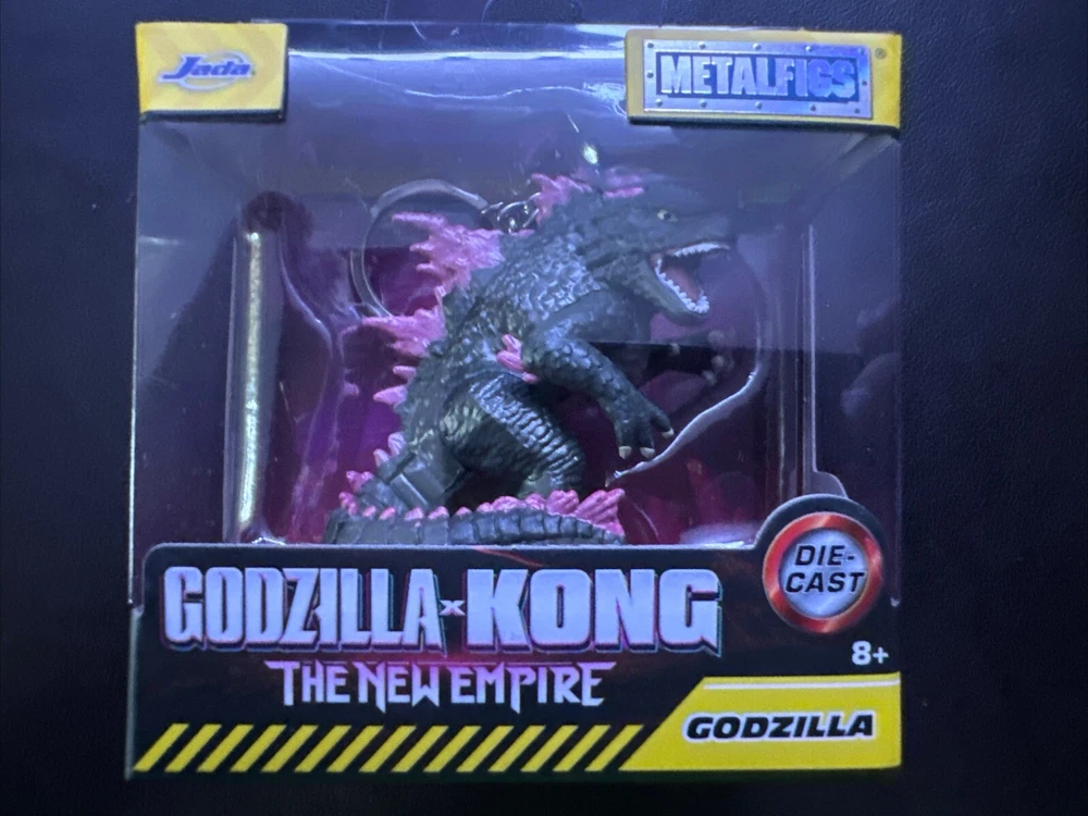 This Jada Toys keychain is a must-have for any Godzilla fan! It features the iconic characters from the upcoming film, Godzilla X Kong: The New Empire, and is a Walmart exclusive collectible. Made in China with high-quality materials, this keychain is perfect for adding to your collection or displaying on your backpack or keys. The keychain is 2.5 inches in height and has intricate details of the characters and franchise logo. It is not signed and is not vintage. This item is perfect for anyone who loves science fiction and horror, and is a great addition to any Godzilla collection.
