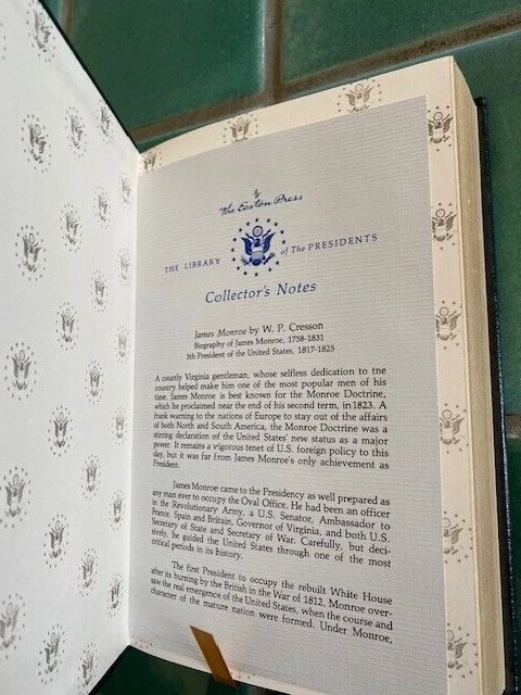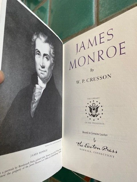This is JAMES MONROE by W. P. Cresson, part of the EASTON PRESS Library of the Presidents Series! Leather HC, no DJ as issued, minimal wear, includes Collector's Notes. Ships securely.
