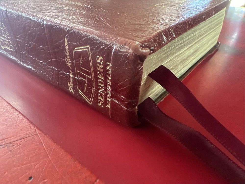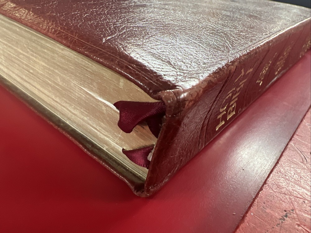 This is a genuine leather bound study Bible in the Senders edition with red letters. The book features a personal size, large concordance, and a marker ribbon. The words of Christ are in red, and the Bible is published by Thomas Nelson. It is an ideal choice for young adults, ages 4-8, ages 9-12, and adults. The book is vintage and was published in 1979. The authors are mixed, and the book is written in English. The Bible is perfect for those interested in Christianity, and it is a great addition to any religious and spiritual collection.