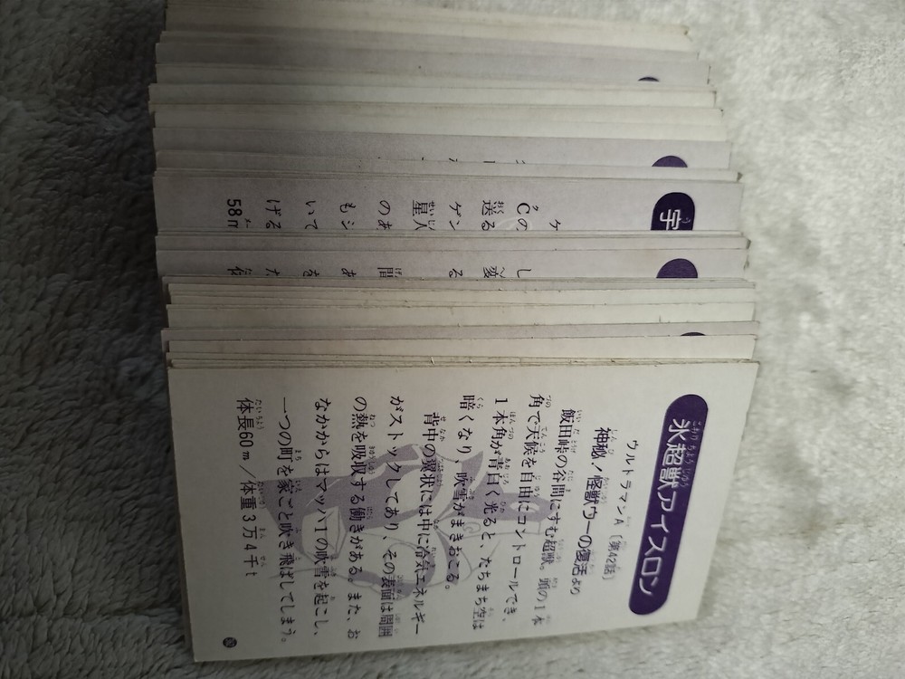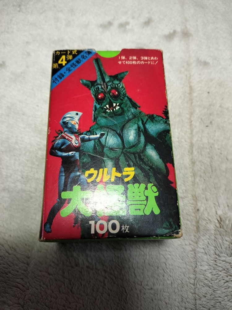 This is a set of 100 Ultraman cards sold in Japan over 50years ago. Nowadays, there are few left in Japan and it is very difficult to obtain. Powerful movie scenes are contained in 100 cards. Card siz...