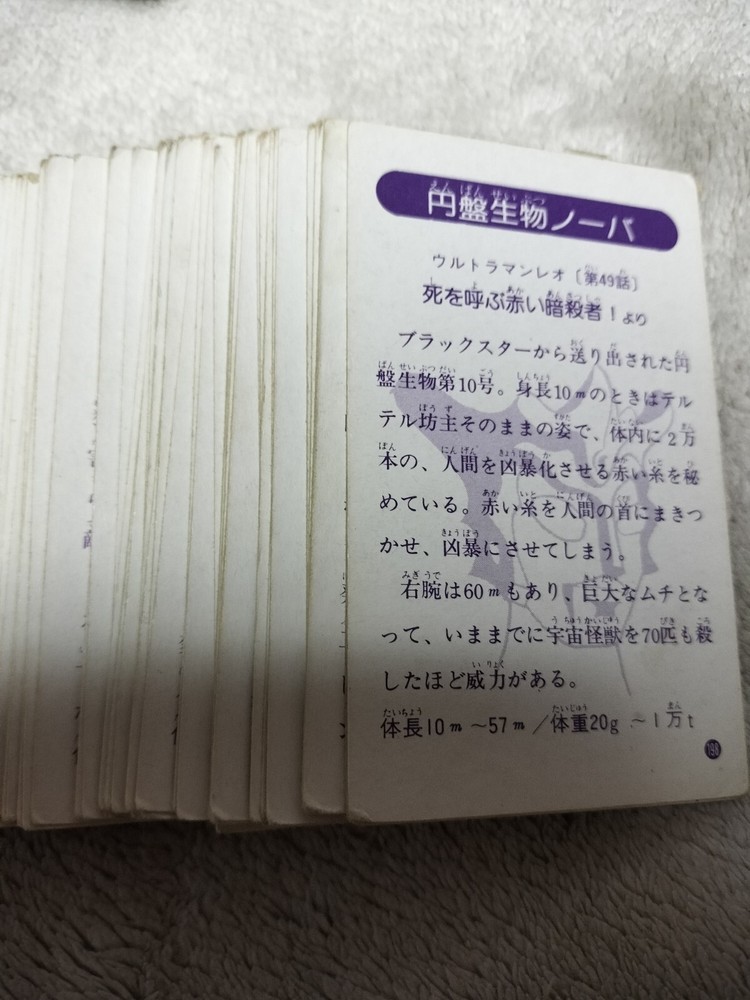 This is a set of 100 Ultraman cards sold in Japan over 50years ago. Nowadays, there are few left in Japan and it is very difficult to obtain. Powerful movie scenes are contained in 100 cards. Card siz...