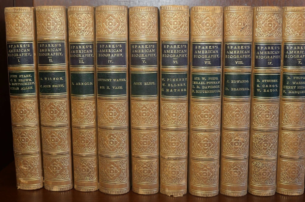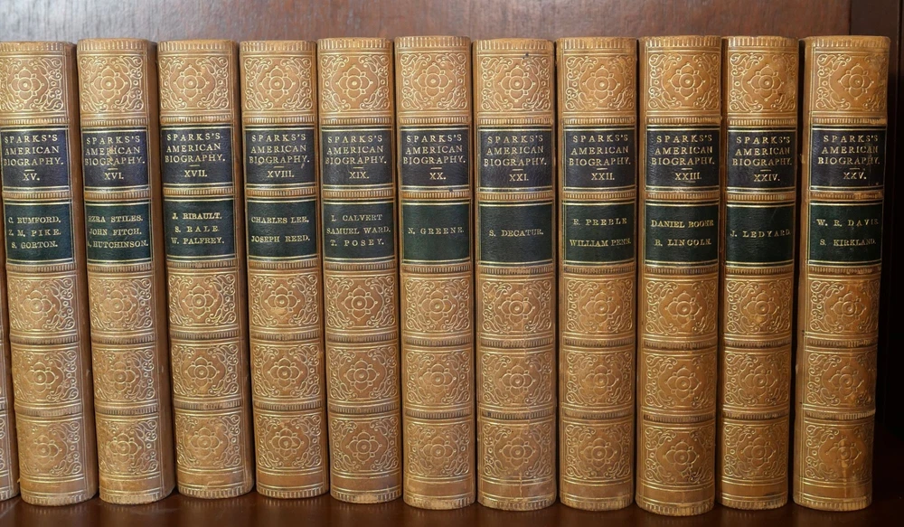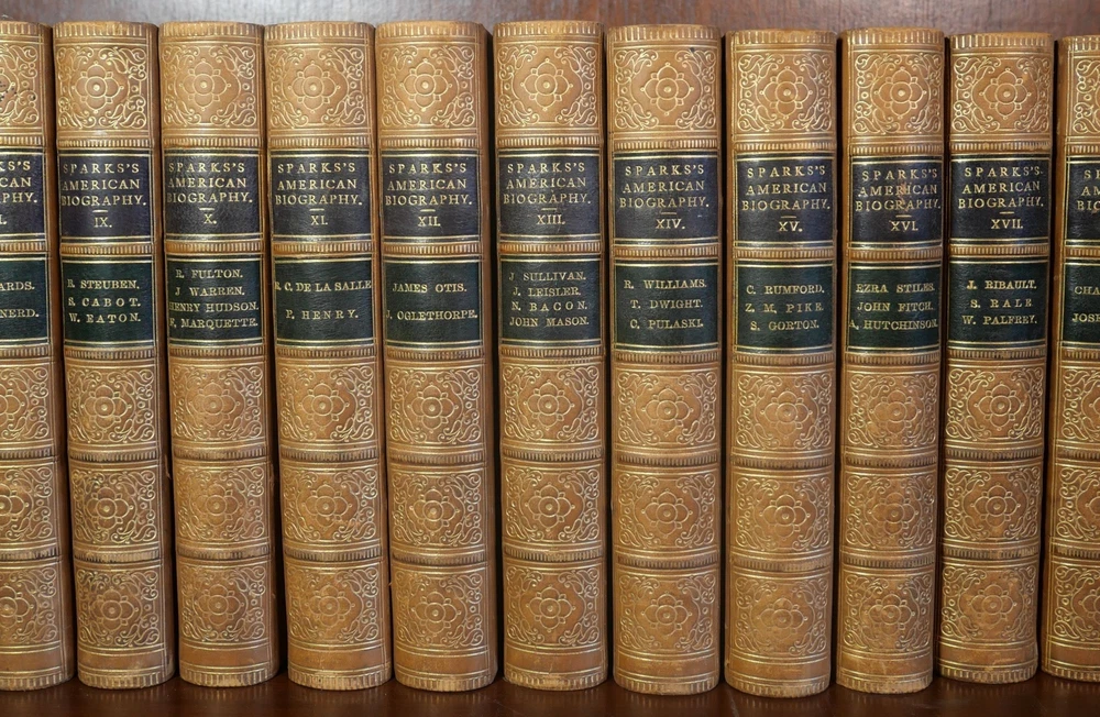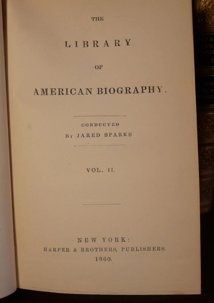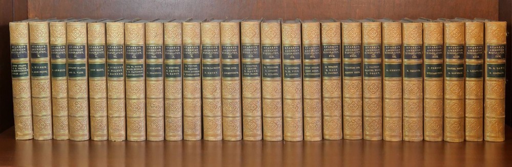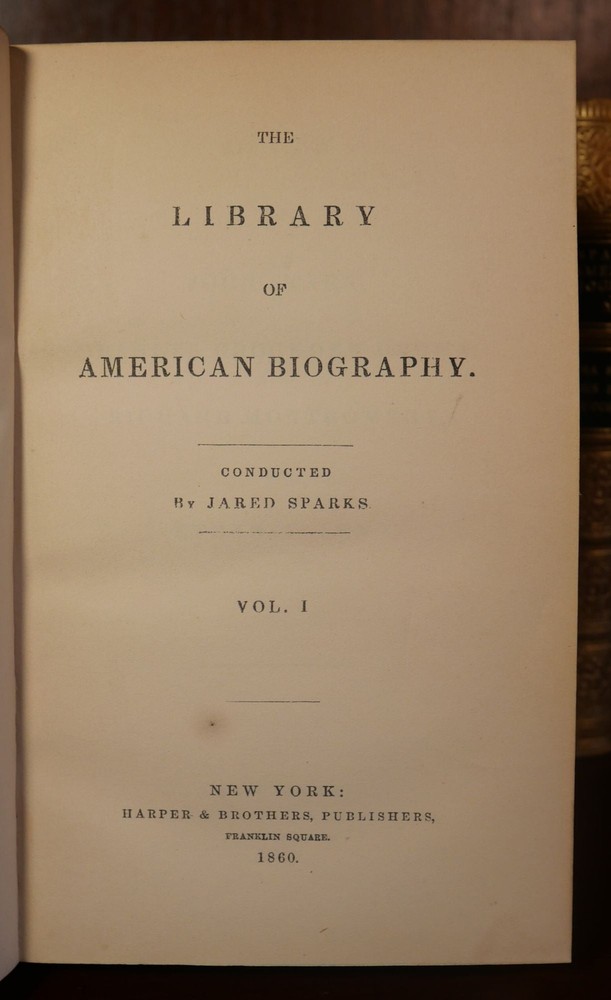 The Library of American Biography Complete in 25 Volumes Author: Jared Sparks Title: The Library of American Biography Complete in 25 Volumes Publication: New York: Harper & Brothers Publishers, 1860 Description: Complete in 25 volumes. Finely bound in tan leather with board boards. Volumes measure approximately 6.75" x 4.25". This collection is in very good condition. Minor wear to the boards and spines. Gilt lettering and design on the spines bright and well preserved. Interior pages are clean. Please view the many other rare titles available for purchase at our store. We are always interested in purchasing individual or collections of fine books. Inventory #(O8-84). Seller ID: 6496 Subject: Autobiography/Biography/Memoir , History , Sets/Collections Ernestoic Books Terms All orders ship within two business days. Standard mail is USPS Media Mail. Expedited and international shipping are also available. We offer combined shipping on multiple orders. All items are guaranteed to be as described or they may be returned within 30 days of receipt for a full refund. This listing was created by Bibliopolis.