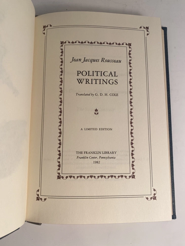 Jean Jacques Rousseau Political Writings The Franklin Library 1982 Dark Academia.