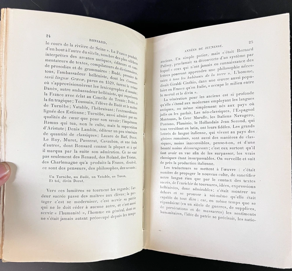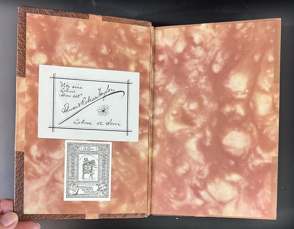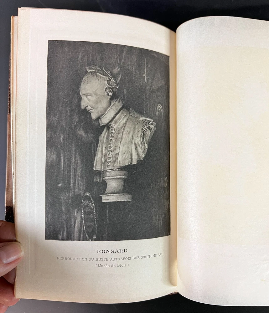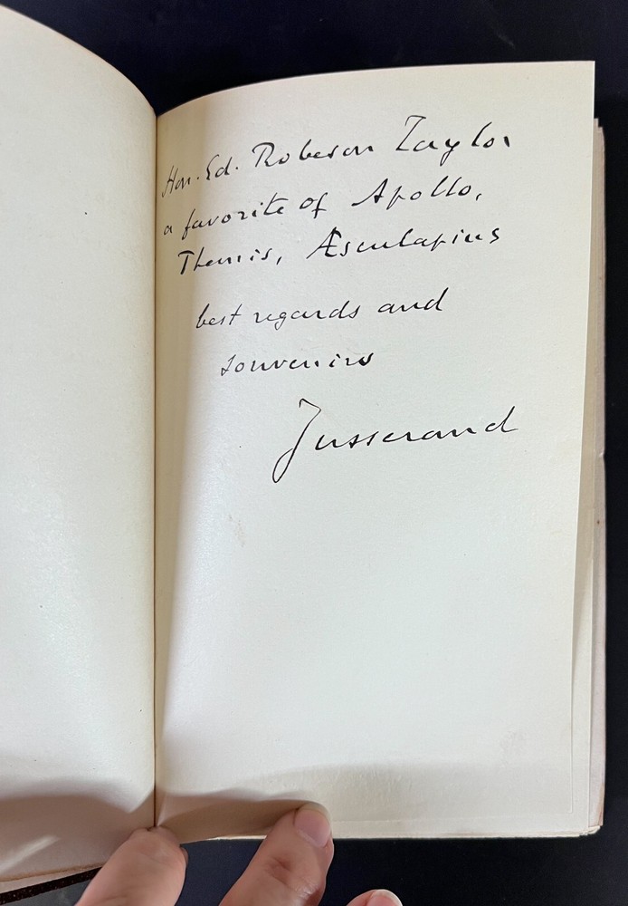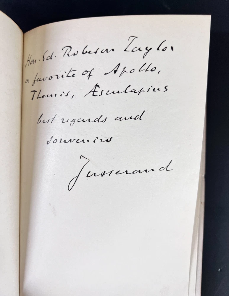Description : Jean Jules Jusserand, Ronsard, Signed and inscribed by author on flyleaf, 1st Edition, illustrated. Brown Half morocco on marbled boards, marbled end papers, Gilt title on spine, raised bands, gilt top edge. Two bookplates (letter is written to namesake on bookplate.) Soft wrap covers bound in back of book. Published Hachette & Cie Paris 1913 Approx. Measurements: 5 x 7.5 x 1 inches Condition: Great condition, slightly sunned spine, pencil notations, slightly toned edges to pages. PHB1701sch We have a fine selection of quality items for sale at Amphora Art & Antiques. International as well as domestic customers are welcome - please contact us with questions regarding shipping or listings, and we will assist you quickly. All items can be inspected in-person or are available for pickup from our large Wilmington, CA warehouse with no additional fee or charge. The authenticity of all items listed are guaranteed to be as represented - all efforts are taken to ensure accurate and descriptive condition reports and photographs. We reserve the right to use another shipping carrier other than what is listed to ensure your purchase arrives safely. Fedex cannot ship to a P.O. Box. Please contact us before or upon purchase if you have a preferred shipping carrier.