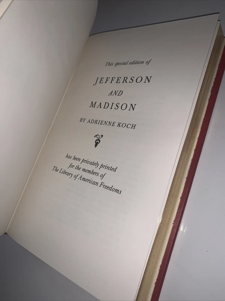 Jefferson and Madison by Adrienne Koch (Hardcover, Leather-Bound, Gold-Edged). In excellent condition! See all photos! Free Shipping!