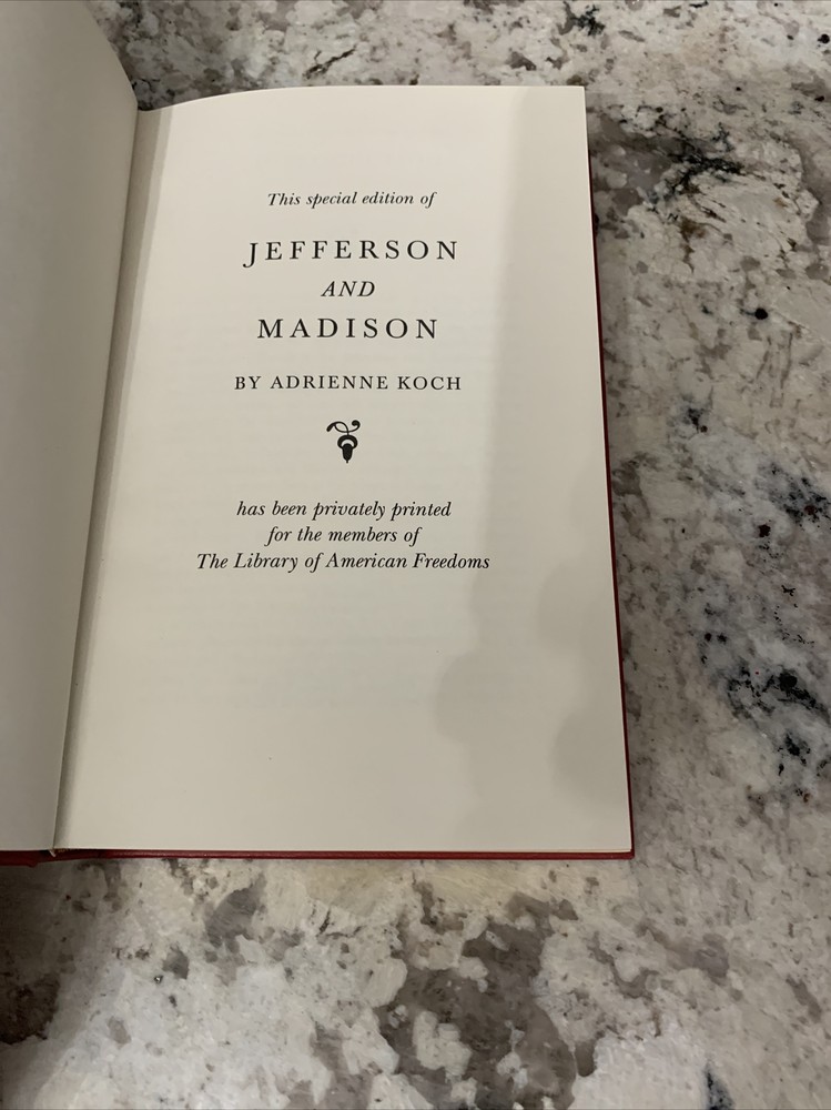 Jefferson and Madison bu Adrienne Koch 200 The Library of American Freedoms Leather...