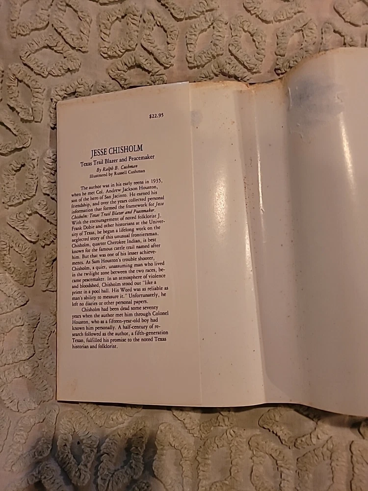 This rare and collectible book titled "Jesse Chisholm Texas Trail Blazer and Sam Houston's Trouble-shooter" by Ralph Cushman 1st Edition is a must-have for any book enthusiast. The hardcover binding and original printing from 1992 make it a valuable addition to any collection. The book features an engaging storyline and is written in English, making it accessible to a wide audience. The dust jacket and special attributes, such as being a 1st edition & signed by the the author, add to its uniqueness. The author, Ralph B. Cushman, is an expert on the subject matter and has created a captivating narrative. This book is perfect for anyone interested in the history of Texas. There are a few issues with the outside cover & inside of the dust jacket. See photos
