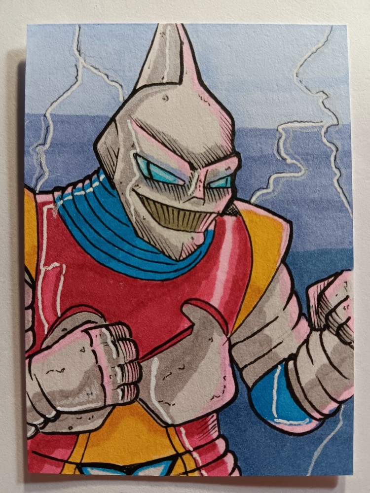 When you need someone to stand up to the Monsters attacking the city, you call Jet Jaguar. The Giant Hero from the Land of The Rising Sun. Makes a superb addition to any Toho or Kaiju fan. Rendered using Micron Pigment pens, Ohuhu Markers, and white gel pen by artist JACS