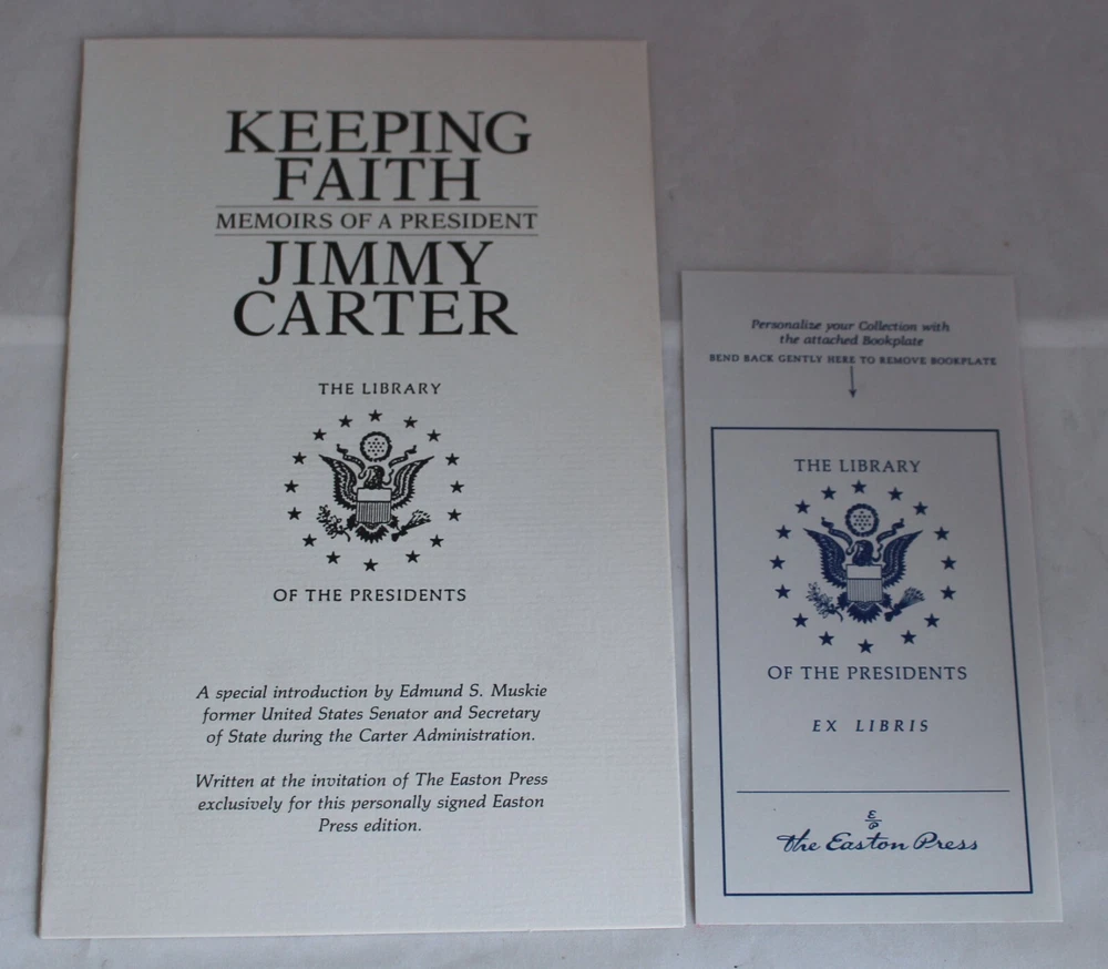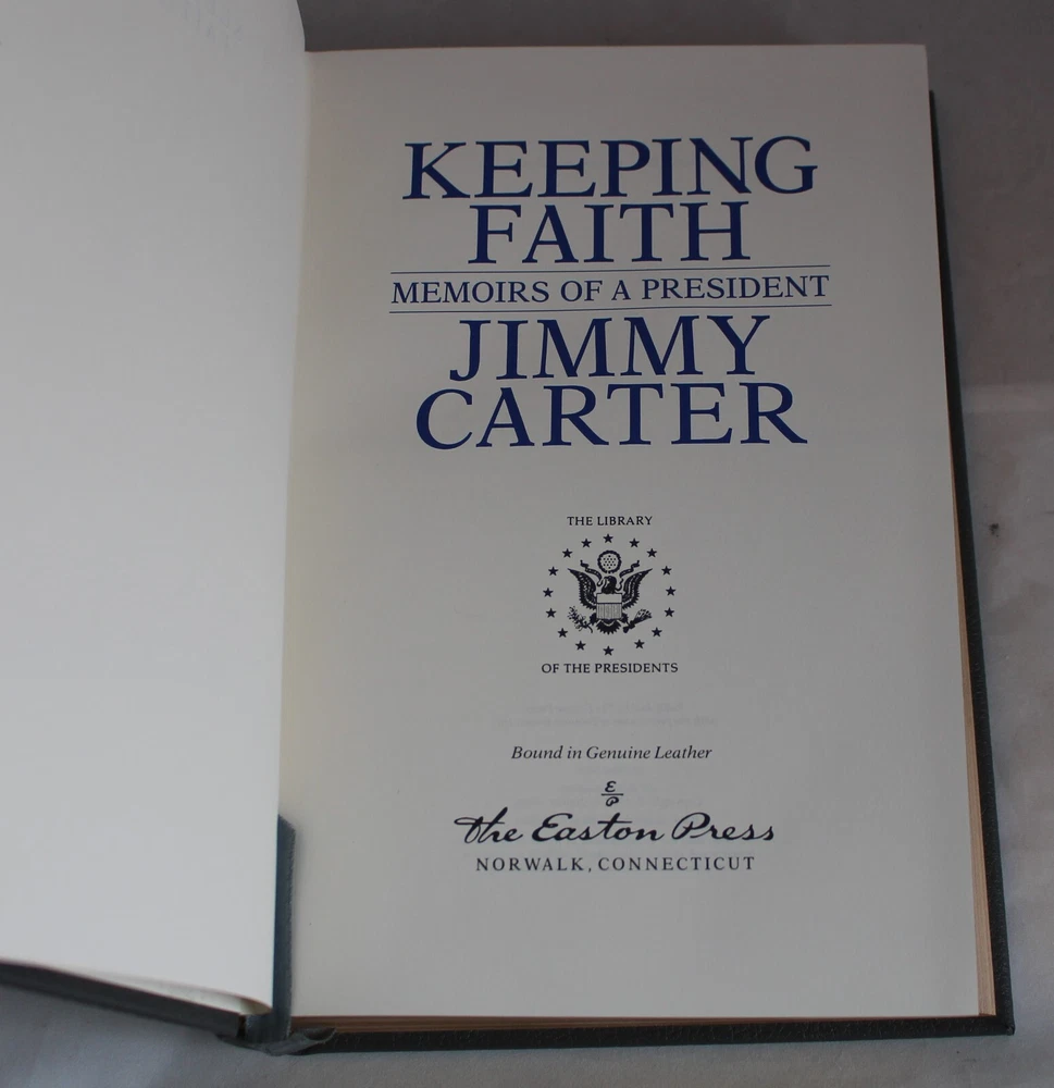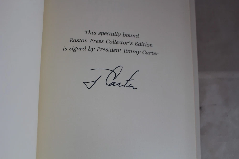 This stunning Easton Press edition of *Keeping Faith* is a treasure for collectors and history enthusiasts alike. The genuine Jimmy Carter autograph adds incredible value, while the luxurious leather binding, gold-edged pages, and elegant craftsmanship make it a standout piece. The book offers a fascinating glimpse into Carter’s presidency and personal journey, beautifully preserved in this high-quality edition. A true masterpiece for any library!