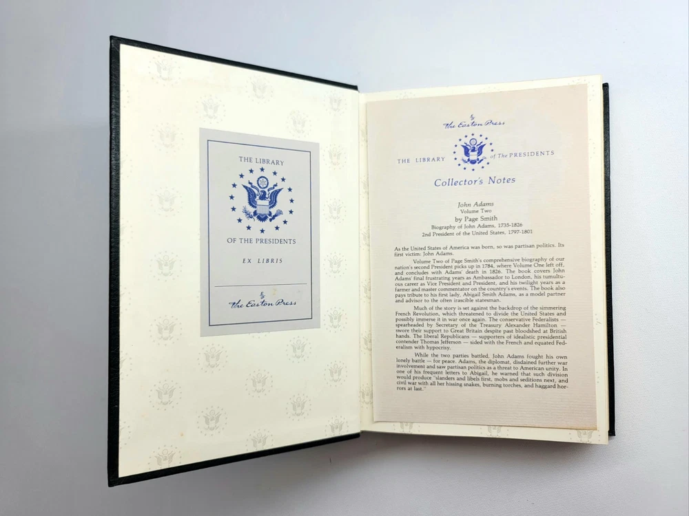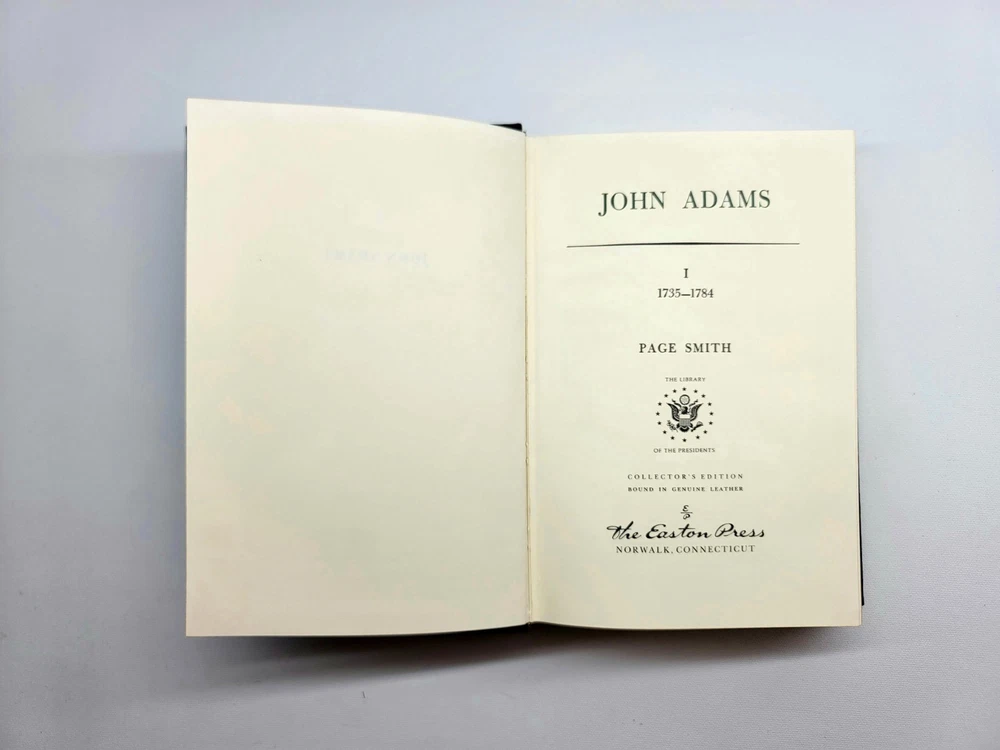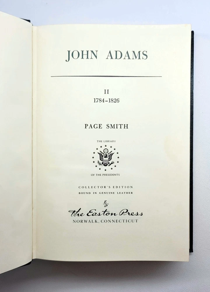 John Adams by Page Smith Two-Volume The Easton Press Full Leather This is a used book with general edge and shelf wear, some fading to the covers and spotting on gilded page edges. No writing or highlights. Please utilize pictures to determine the exact condition of each item. If you have a question, please send a message, and I will answer you promptly. Thanks for looking.