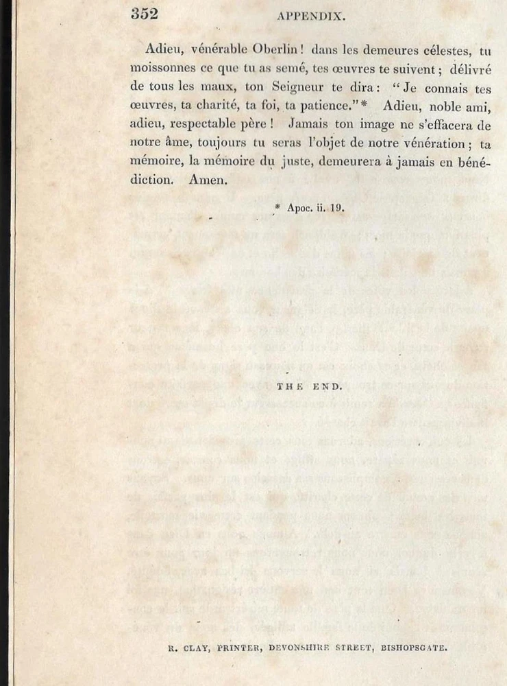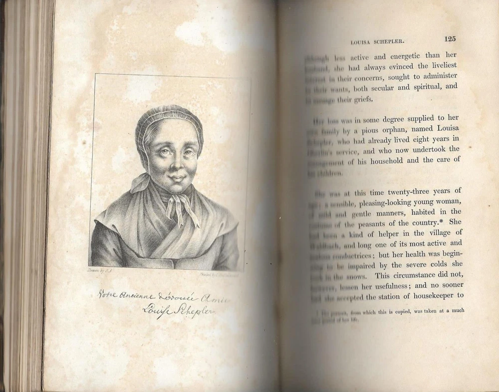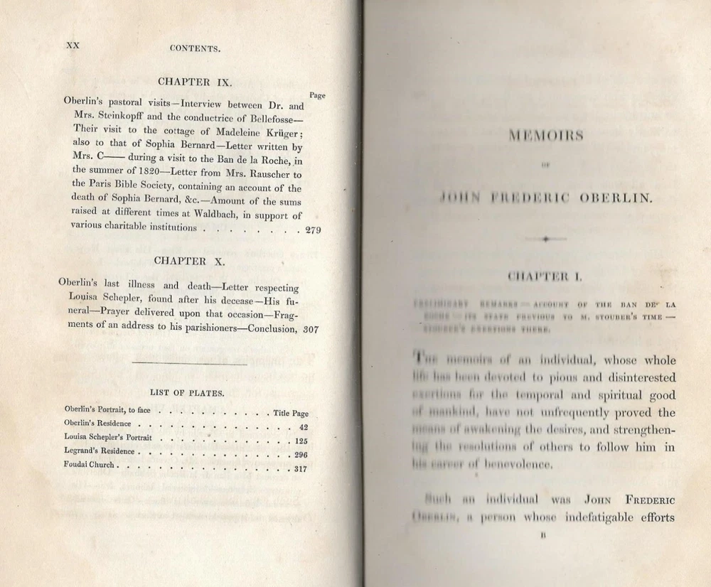 UP FOR AUCTION: RARE BOOK: Memoirs of JOHN FREDERIC OBERLIN : Pastor of Waldbach in the Ban de la Roche (Compiled from Authentic Sources chiefly in French and German) by John Frederic Oberlin, illustrated with a silhouette portrait frontispiece and 4 other plates including 3 lithograph views, Published by Holdsworth and Ball, London, UK, 1829, 1st Edition ("1829" on Title Page), Printed by R. Clay, Bishopsgate, Leather Book, 352 pages, In English language only, This is an antique, 1829, memoir of J.F. Oberlin (1740-1826), published shortly after his death. He was an Alsatian pastor, who developed a great following for his tireless work and passion for philanthropy. Oberlin College in Ohio is named for him. The book is signed by 2 former owners. The front endpaper has the signature: "Lady Buxton, Colne House" and the first blank page has the signature: "Beatrice Baret (?), New York, at 2nd hand (?)". My research shows Lady Buxton was the wife of a Baronet of the United Kingdom, and she lived at "Colne House" in the coastal town of Cromer, Norfolk, England. See ebay pics above for actual book. This is a nice, vintage, historic book. Fair Condition [ Leather spine-covering is nearly complete, but small pieces are missing at top, bottom, and lower half; Hinges are intact-but-loosening considerably; first 6 sheets of text are present-but-separated, Front endpaper has name of former owner "Lady Buxton, Colne House" and first blank page has name of another former owner "Beatrice Baret, New York (?)", Title Page and frontispiece have moderate foxing (see pics above); otherwise, leather book is solid, text is very clean, strongly printed, well-illustrated, and fully complete ] 352 pages, approx. 8.5" x 5.5" x 1.25", mottled boards with Leather Spine and Corners, Gilded titles, Top paper edge gilded, 1/2 Leather Book Welcome international ebay shoppers I will reduce combined shipping on multiple purchases. Domestic shipping will include tracking. Please visit my other auctions, and email any questions. Thanks for looking! I try to describe my items thoroughly, but buyers may still need more information than I provide. Shipping costs can be expensive to my small auction business. Please ask any questions to be sure before you buy. Thanks.
