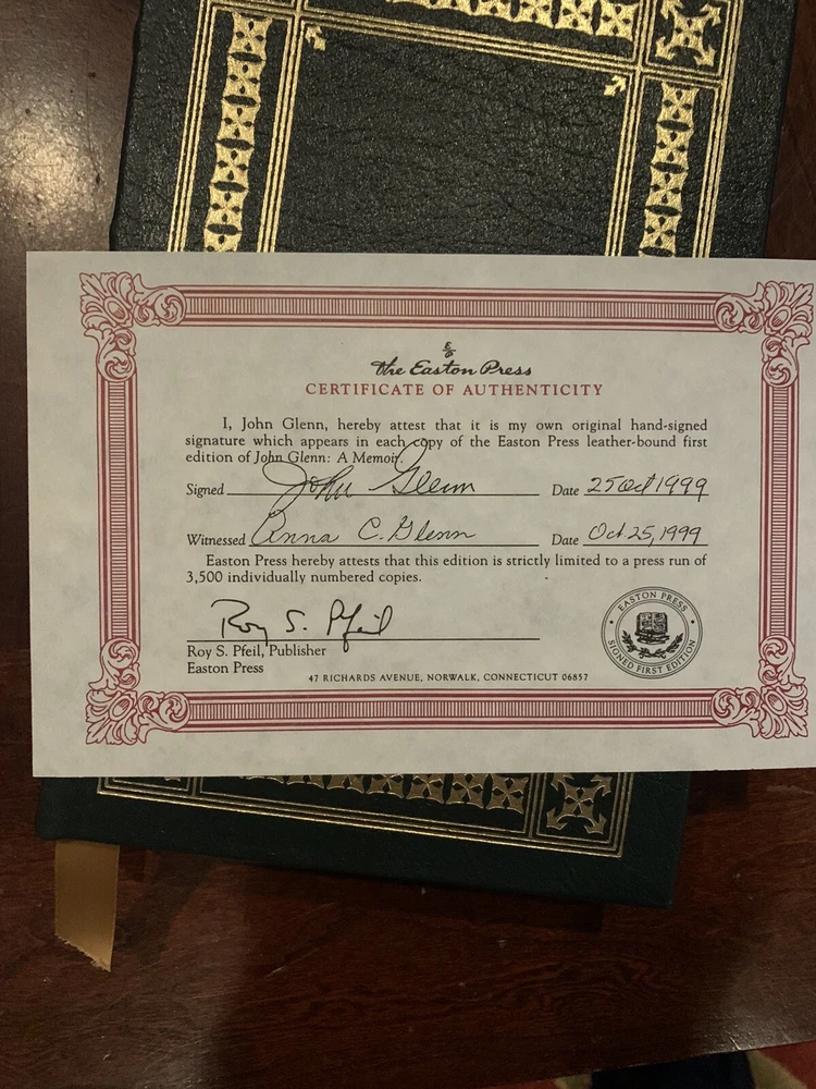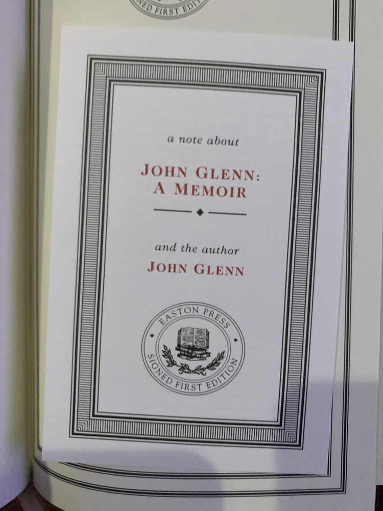 John Glenn: A Memoir SIGNED EDITION The Easton Press Leather Bound NASA Mercury.