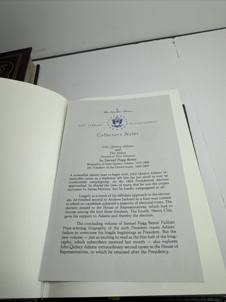 John Quincy Adams by Samuel Flagg Bemis, 2 Vols. Easton Press. Shipped with USPS Media Mail.