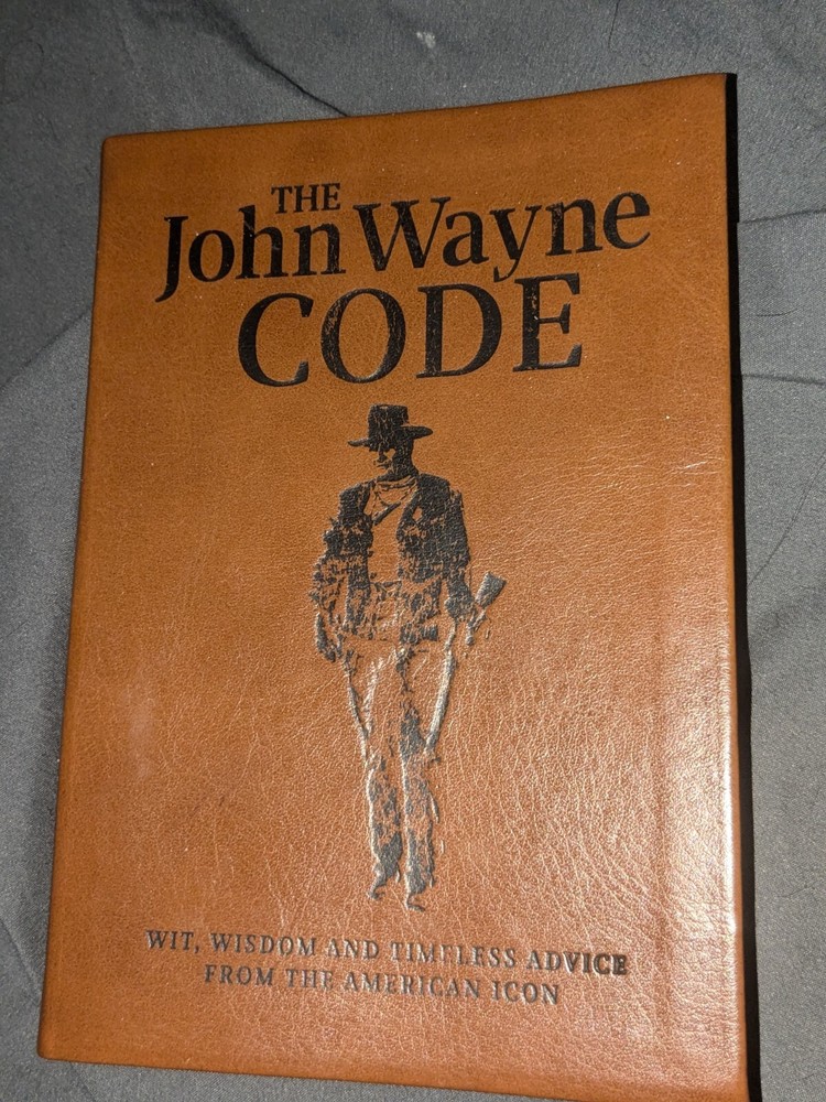 The John Wayne Code: Wit, Wisdom and Timeless Advice from the American Icon Published by Media Lab Books in 2017, this beautifully crafted leatherbound edition is a tribute to the legendary American actor John Wayne. This 156-page book compiles timeless quotes, life lessons, and inspirational advice drawn from John Wayne’s career, personal life, and the values he lived by. Featuring rare photos and insights contributed by the editors of the Official John Wayne Collector’s Edition Magazine, this volume captures the spirit and wisdom of an American icon. The leatherbound cover adds a classic and durable touch, making it a perfect gift or collectible for fans of John Wayne and Western Americana. Whether you’re looking for motivation, a unique collectible, or a meaningful gift, The John Wayne Code delivers inspiration and nostalgia in one elegant package. Book Details: Format: Leatherbound hardcover Pages: 156 Publisher: Media Lab Books Publication Year: 2017 ISBN: 978-1942556589 Weight: 0.52 lbs Dimensions: Approximately 8.5” (H) x 5.5” (W) Add this iconic volume to your collection