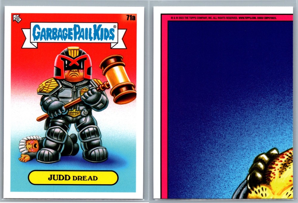 Absolutely love this Judge Dredd spoof set from Garbage Pail Kids! The artwork is hilarious and spot-on, capturing Sylvester Stallone’s iconic look with that classic GPK twist. Both cards arrived in perfect condition—pack fresh and well-protected in a top loader. Super fast shipping too! A must-have for collectors or anyone who enjoys a good laugh. Great gift idea for fans of the movies or GPK series. Highly recommend grabbing these before they’re gone!