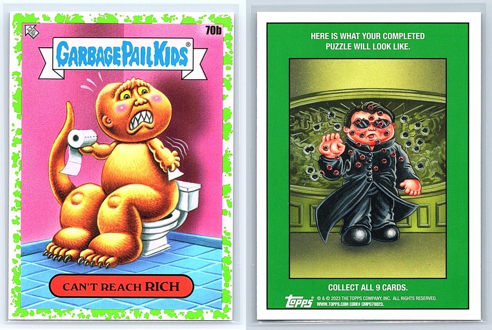2023 Topps Garbage Pail Kids Series 2 - Intergoolactic Mayhem Includes cards pictured - Can't Reach Rich 70b Perfect for Christmas & Birthday Gifts, Gags and Fun! Check out our Seller Page for more GPK Cards! Images are representative of card received. Card is Pack FRESH and in Near Mint or Better! Shipping Information ***Will ship FAST (I drop off orders at USPS daily before last pickup except Weekends) Item will ship properly in a TOP LOADER/Sleeve with TRACKING! I have years of experience shipping thousands of cards successfully all over the world. ***In order for us to provide affordable GPK Global option, International Shipping will ship via USPS International Basic Mail and may not have tracking depending on value of order.*** Combined Shipping discounts for International!! Affordable rates / Safest Delivery! See reviews **I am not responsible for any custom fees/Import taxes etc. Please contact your local country contacts for any additional Import fees. ***Please FOLLOW our GPK Seller EBAY STORE for exclusive Deals and Promotions.***