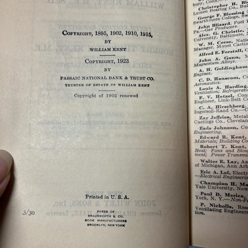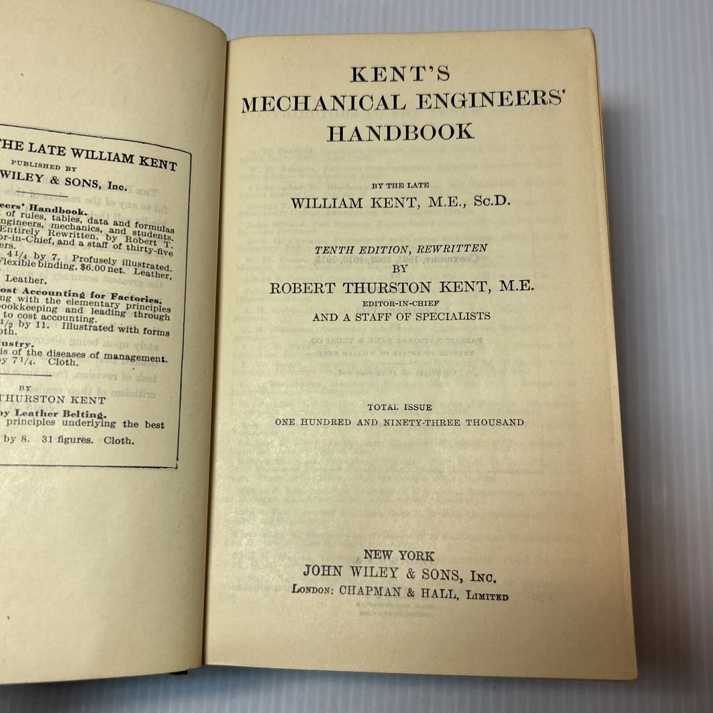 KENT'S Mechanical Engineers' Handbook Tenth Edition (1923 John Wiley & Sons NY) This antique engineering handbook has a leather cover and is in excellent condition, especially due to age. Please see pictures.