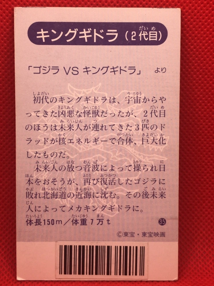 KING GIDORAH Godzilla card 4inch Barcode Battler vintage No.35 TOHO rare