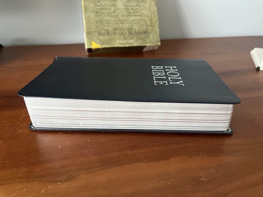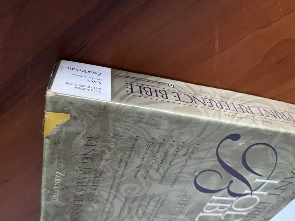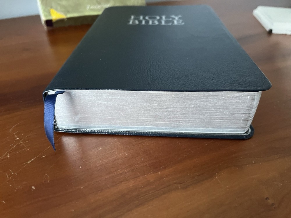 This Bible is absolutely stunning! The navy blue bonded leather feels luxurious, and the silver-edged pages add an elegant touch. The giant print makes reading effortless, and the center column references are super helpful. Even without the box, it’s in perfect condition—looks brand new. The photos don’t do it justice; it’s even more beautiful in person. Highly recommend for anyone wanting a durable, easy-to-read KJV Bible!