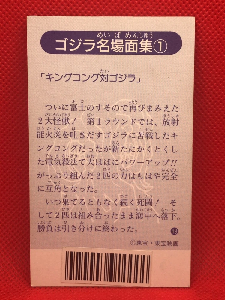 Vintage TOHO KING KONG vs Godzilla 4inch Barcode Battler rare card No.49