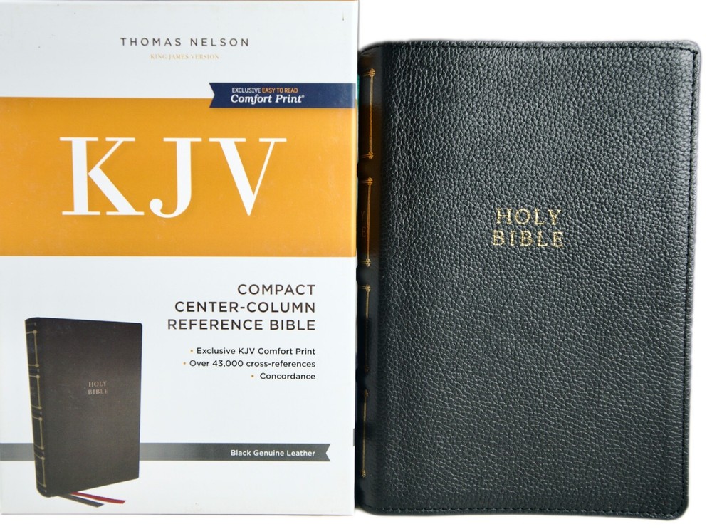 KJV Bible: Compact Center-Column Reference Bible Black Genuine Leather *Over 43,000 cross-references to quickly find related passages. *Concise concordance to look up word occurrences throughout the Bible. *Full-color maps for enhanced study and reference. *Flexible and strong Smyth-sewn binding for durability. *Satin ribbon markers to keep your place easily. *Clear and readable 8-point KJV Comfort Print for comfortable reading. * Size : 7.5 x 5 Inches. For more details, please see HD photos. Please check our eBay store for more products you LOVE! All items come from a clean, pet-free, and smoke-free environment.