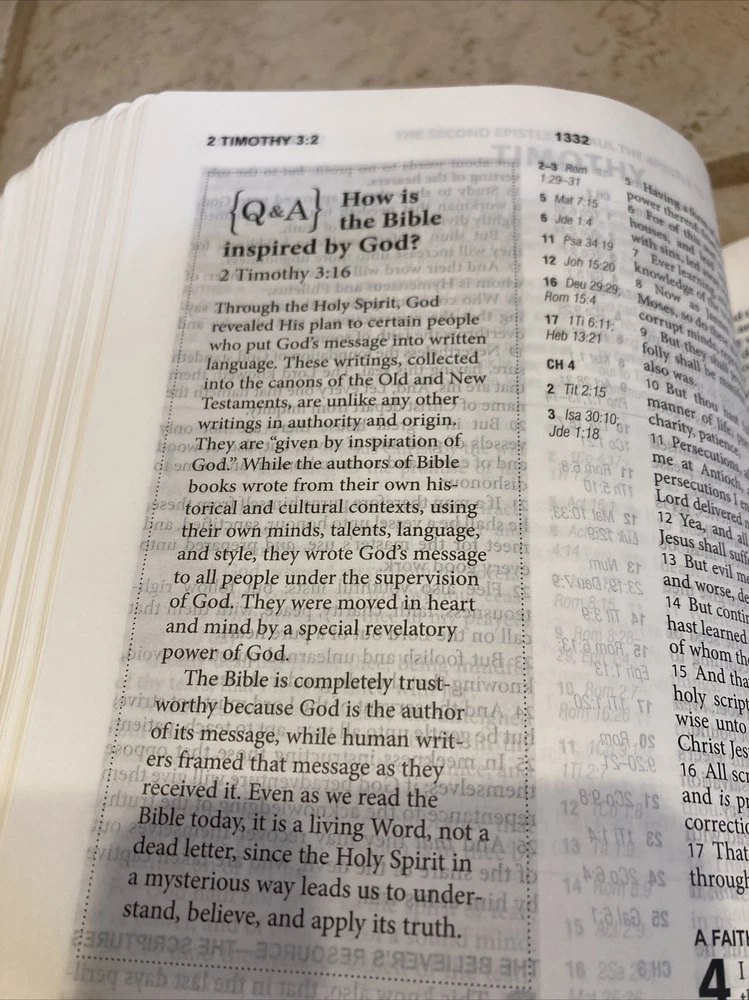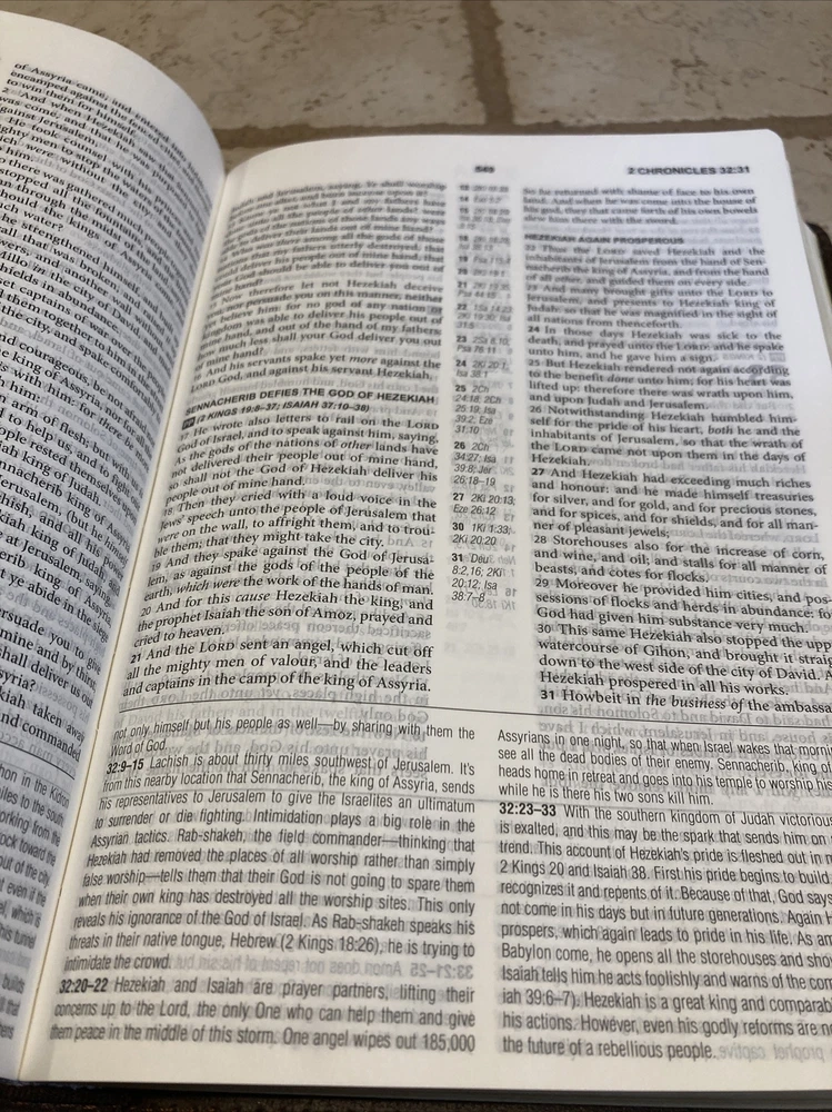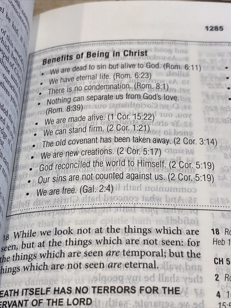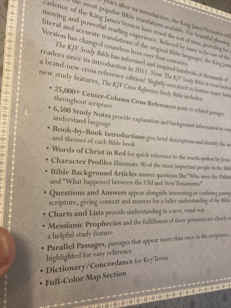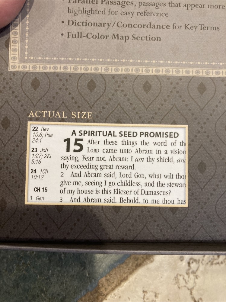This item was in excellent condition and appeared to be new. The seller was careful to package it so I would receive it in timely fashion and in good order. For those considering purchasing this item, it’s a must have. I love all the extras. The print is small but greatly helps keep the Bible thin and easy to carry with you anywhere. Will consider buying from them again without hesitation. Thank you for posting this item.