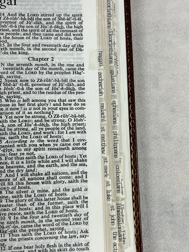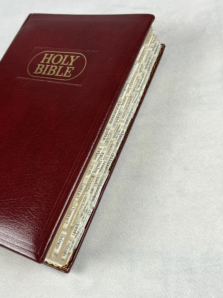 KJV Concordance Holy Bible Red Letter Edition Leather Christian Heritage There are taped on tabs for quick book reference Pictures are of the actual item you will receive, please review pictures for item condition. Any flaws with the item will be mentioned in the Item Condition section as well as the Description and pictures will be provided. Ships out Fast. I do my best to ship next business day, sometimes even same day depending on the time of purchase. Thank you for checking out the listing and feel free to ask any questions. If you have an issue with the item, please reach out and I will do my best to resolve it.