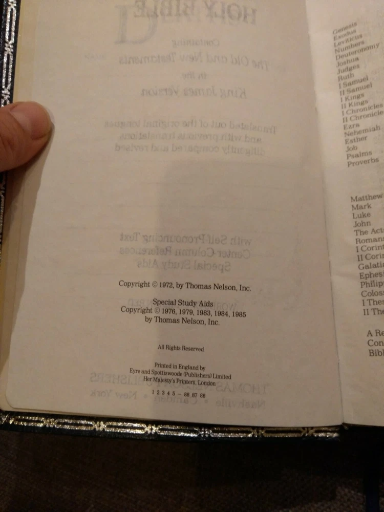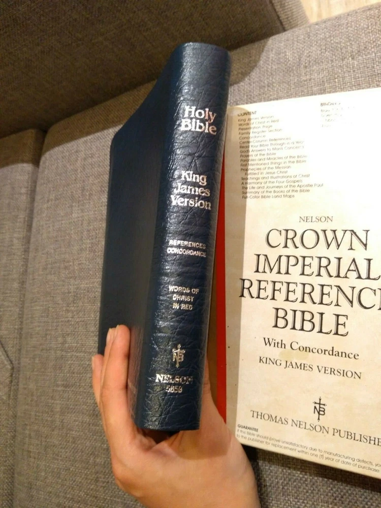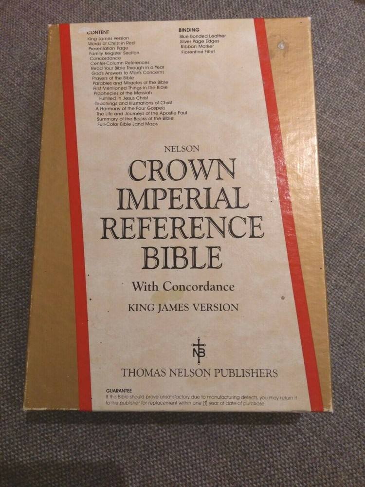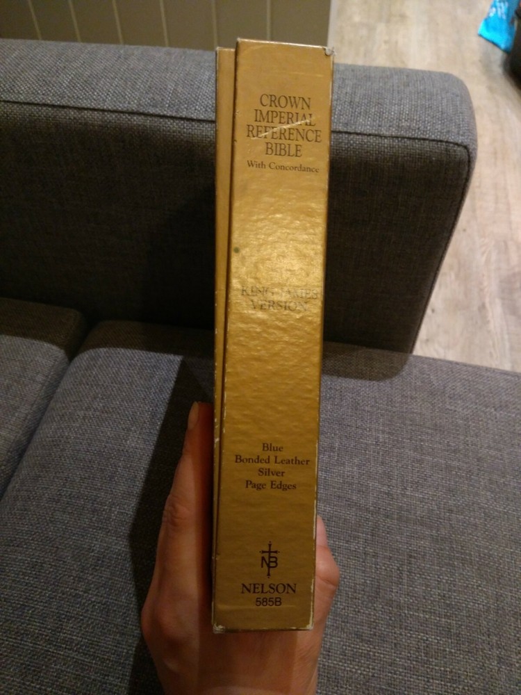 KJV Crown Imperial Reference Bible 585B Nelson Publisher 1985. Bonded blue leather, silver page edges. It is in very good used condition. First page has been signed. Rare, only one on eBay. Please see all photos. From pet and smoke free home. For UK buyers it will be dispatched with Hermes / Royal mail 2nd class within 2 working days from payment. For US / Canada buyers it will be sent with Royal Mail International Tracked within 2 working days from payment. For other countries pls pm me. Please check my other auctions, I'm selling a lot of vintage things from my private collection. KING JAMES VERSION (KJV) In 1604, at the request of King James I of England, representatives from the Church of England and leading English Puritans gathered together to discuss issues affecting the church in their day. Among those items for consideration was whether God would have them undertake the creation of a new Bible for the English-speaking world. King James approved plans for a new translation, and work began in 1607. Nearly 50 of the day’s finest scholars, all from the Church of England, were organized into six groups for the task. Using the Bishop’s Bible of 1568 as the basis for this revision, the Old Testament was translated from Hebrew and the New Testament from Greek. The completed work was then peer-reviewed before being sent to bishops and other church leaders for their examination, and ultimately to King James for his approval. In 1611, the King James Version Bible, also known as the Authorized Version, was published. Because of the printing technology available at the time, various misprints, variations in spelling, and other inconsistencies were common in early editions. Therefore, subsequent updates were necessary in 1613, 1629, and 1638. But the revisions made at Cambridge in 1762 and at Oxford in 1769 standardized the text, ensuring that the King James Version would remain immensely readable for generations to come. Today, more than 400 years since its initial publication, the bestselling King James Version Bible continues to inspire, encourage, and strengthen people from all walks of life. The KJV is considered one of the most influential and beautiful works of literature in the English language and continues to be the favorite translation for millions of Christians.
