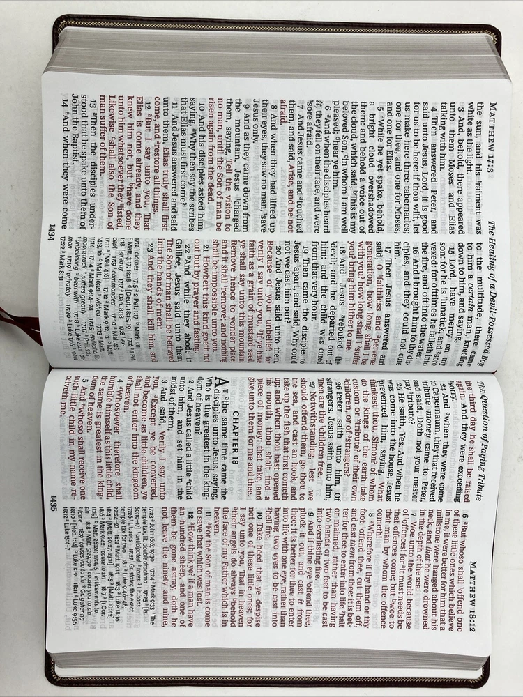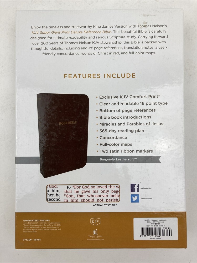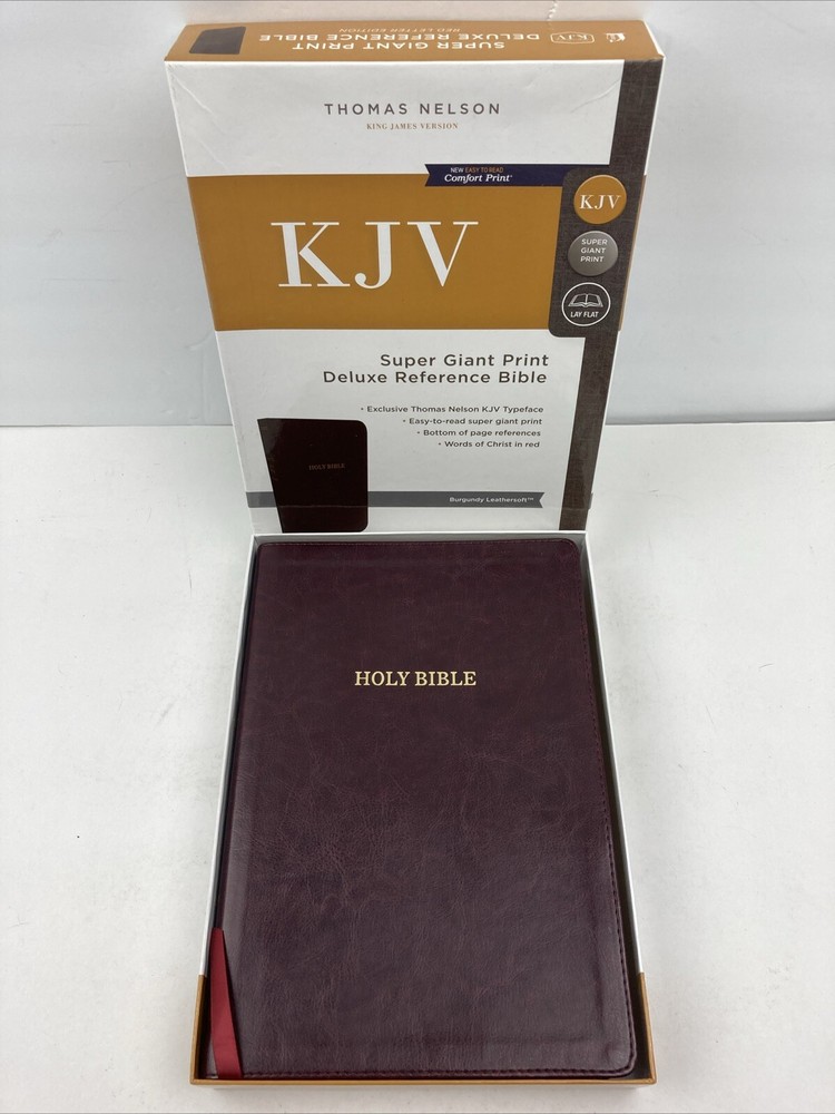 KJV Deluxe Reference Bible Super Giant Print Brown With Box Bonded Leather VERY GOOD CONDITION -- CLEAN COPY/NO MARKINGS ON THE INSIDE (see pics) *Item will be protected well for shipping and comes with a tracking number for confirmation.* I ship out items every day so expect a quick delivery!
