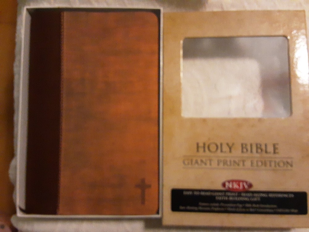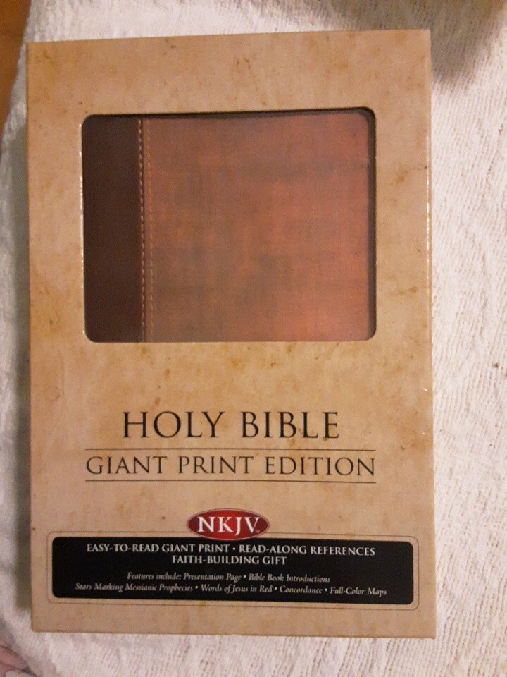 This KJV Bible is absolutely perfect for easy reading with its giant print! The bonded leather cover feels durable and looks elegant in maroon and black. Even though the box has some wear, the Bible itself is in excellent, like-new condition. The thumb-indexed tabs make finding books a breeze. Highly recommend for anyone needing a clear, comfortable-to-read Bible—great value for such a well-made edition!