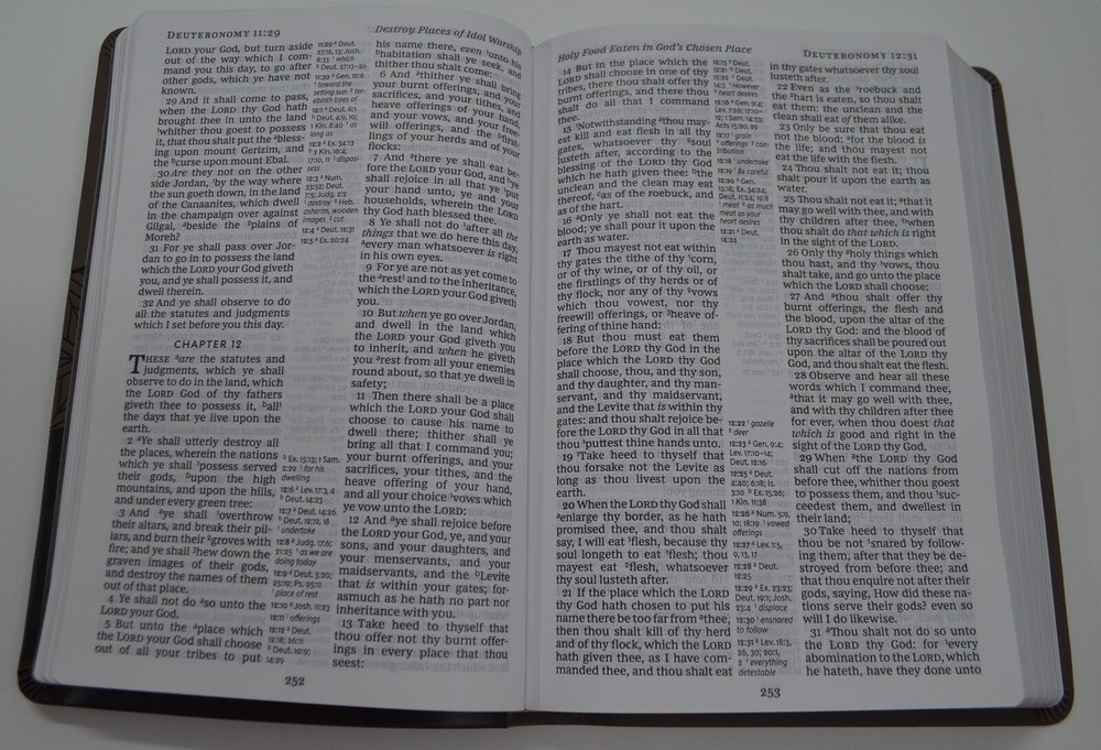 Fast free shipping. Bible was shrink wrapped,in the original box and in a well fitting protective shipping box. It was exactly as described, new, 11 point text size, good paper, and Leathersoft cover. It is slightly lighter and smaller than other Bibles I have with this text size. It also lays flat at any page. The text is black letter which is exactly what I wanted. It is a very good choice for the price. I would definitly buy from this seller again.