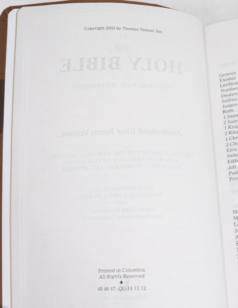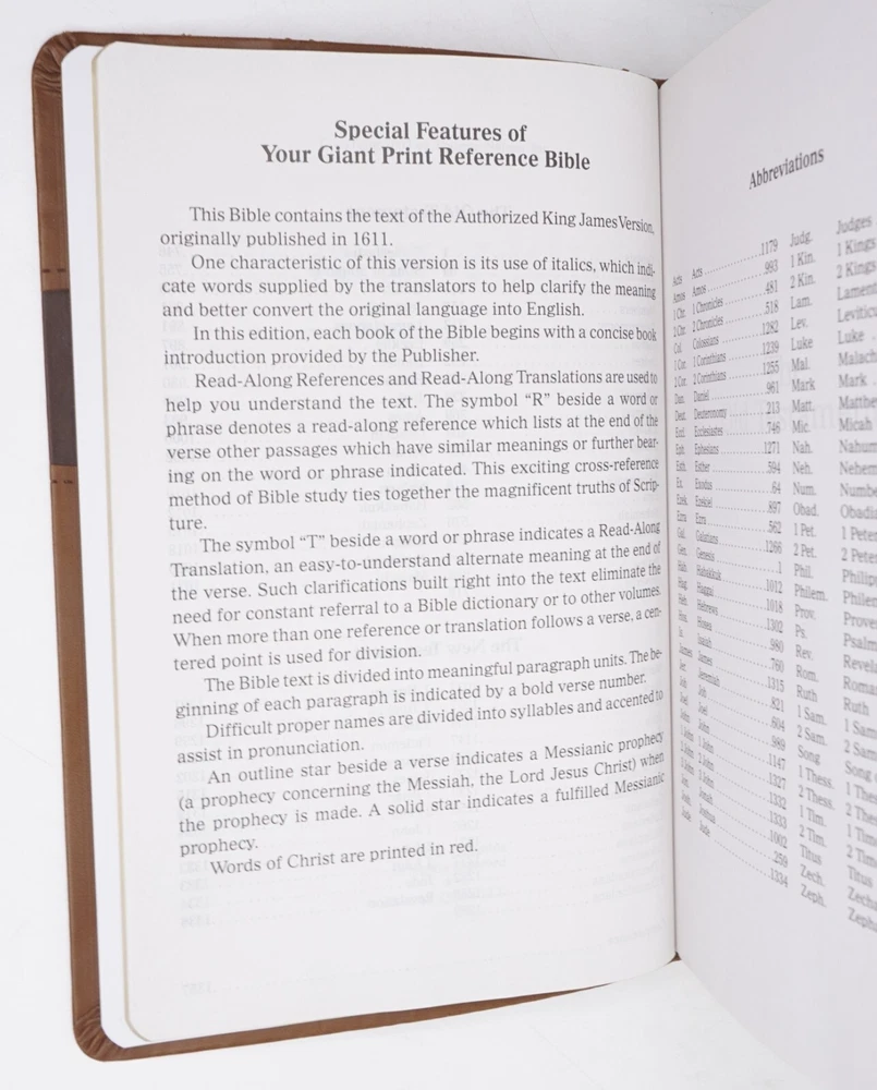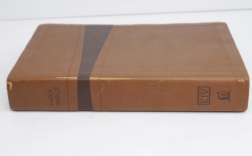 KJV Giant Print Reference Bible 2003 | Thomas Nelson | Toffee Leathersoft Softcover | King James Version Red Letter Edition Crisp vintage copy with a sturdy binding, light handling wear, bright leathersoft cover with some scuffing, and unused presentation page. See photos for details. | You will receive the actual item pictured. WE SHIP QUICKLY! Items often leave the same day but normally the next business day. If you have any problem with your order, please do not leave negative feedback. Message us ASAP and we will work to make sure your issue is resolved quickly. Thank you for shopping with us on eBay!