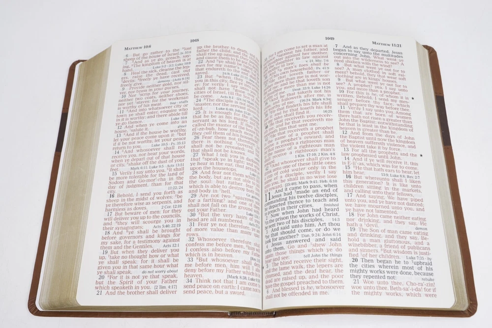 The packaging was neat, clean and well protected. Product was exactly like it was described in almost brand new condition without any flaws or blemishes; creases, tears or scuffs on outer leather & binding in full tact. Pictures did not do it justice and as a collector, and Bible distributer, I cannot overstate this seller more recommended! Thanks guys! I will save you for sure!