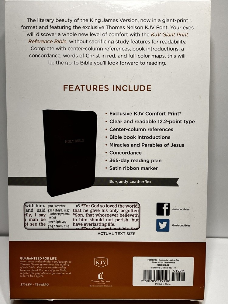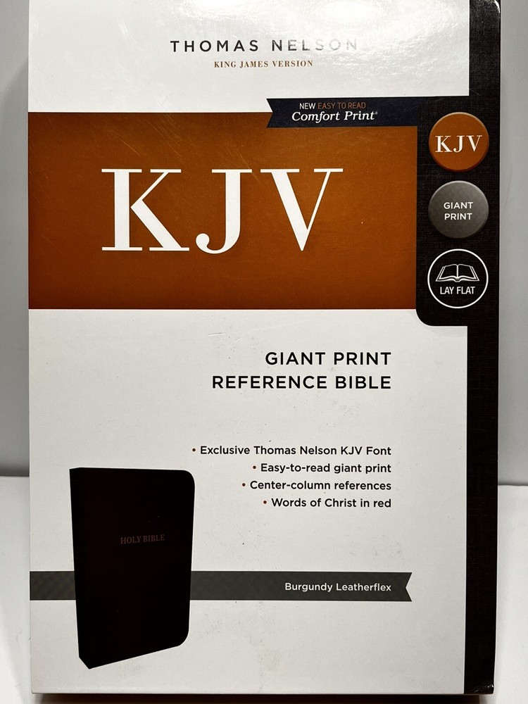 This is a NEW giant print easy to read King James Version Bible burgundy in color. Please see all pictures for the best description and thanks for looking.