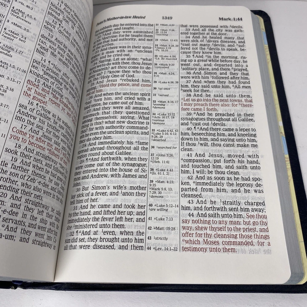 This KJV Bible is a gem—large, clear print makes reading effortless. The leather cover feels durable yet soft, and the pages are clean with minimal wear. Perfect for daily study or worship, it’s a rare find in such great condition. The reference features add extra value. Highly recommend for anyone seeking a reliable, easy-to-read Bible.