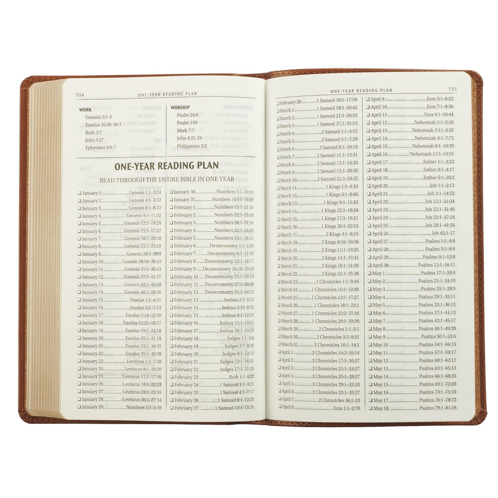 This beautiful KJV Bible is a fantastic gift or personal keepsake! The faux leather cover in saddle tan feels premium and durable, while the clear, easy-to-read text makes it perfect for daily study. The compact size is great for carrying, and the gold-edged pages add a touch of elegance. Loved the ribbon marker and presentation page—ideal for special occasions. A timeless edition that combines quality and affordability!