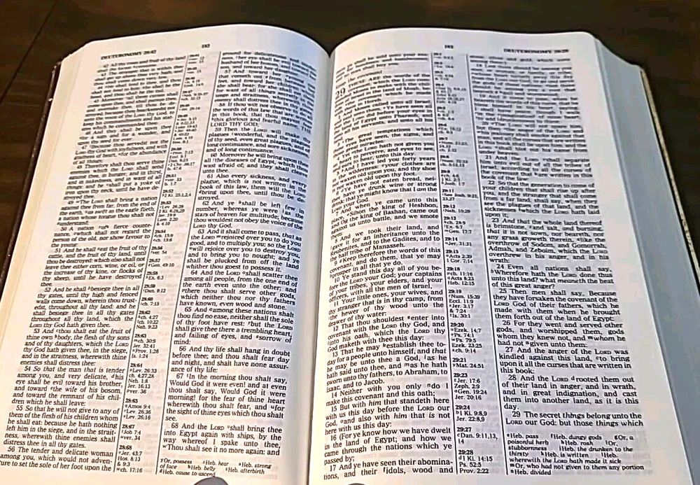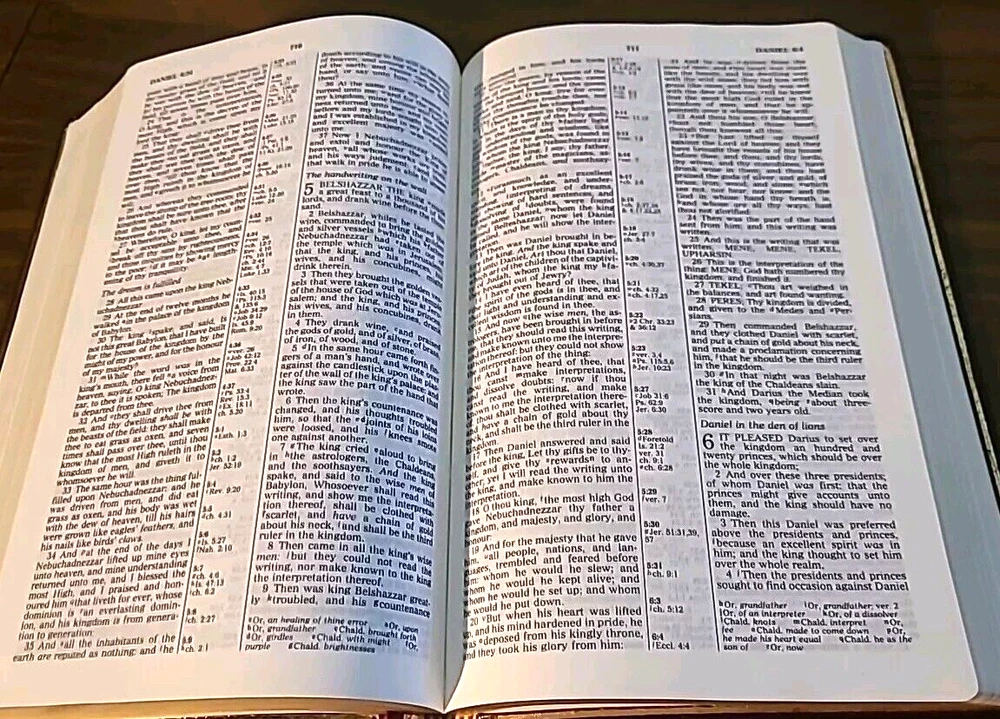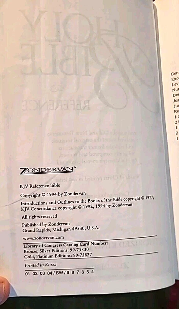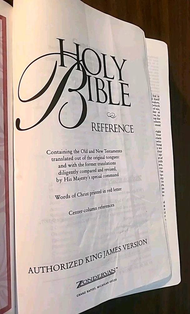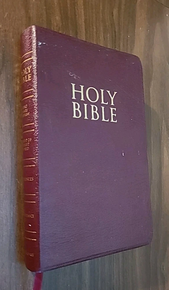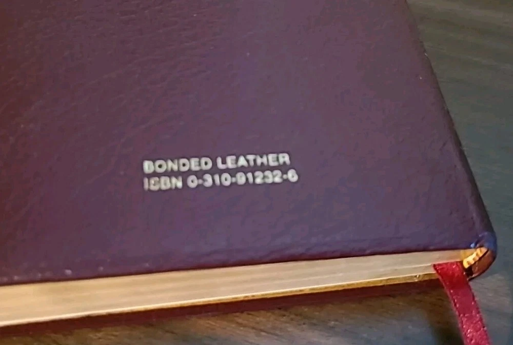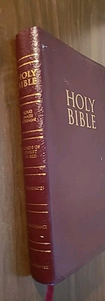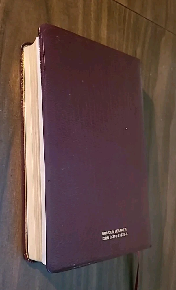 Holy Bible, Authorized King James Version, References by Zondervan Staff (2001, Bonded Leather, Burgundy). Publisher: Zondervan. Mae in Korea. Approx. dimensions are 5 1/2 inches (w) by 8 3/4 inches (h). 1,100 plus pages. ** CLEAN UN-MARKED LEATHER Bound (BURGUNDY) *** Features: - Authorized King James Version (New and Old Testaments) - Red Letter (Words of Christ in Red) - Center-column References. - Concordance - Maps - Bonded Leather (Burgundy) - Sewn Binding with Integrated Nylon Page Marker - Gilt Page Edges Condition: Book is VERY GOOD with light cover/corner/edge wear. Binding is firm/tight and pages appear clean with generally light /wear. Title/copyright pae has more moderate to notable wear. No marks, stains or odors noted. Please review photos to further evaluate condition. Please ask questions BEFORE bidding/buying. SAVE ON SHIPPING !!! I will combine shipping on additional books (most books qualify) for only ONE DOLLAR for each additional book purchased. Please use the "ADD TO CART" button and then "CHECKOUT" to combine shipping. Fees should calculated automatically. NEED IT FAST. Contact me for an Expedited shipping quote BEFORE bidding/buying. Puerto Rico and other US Territories may contact me for Priority Mail shipping quote. I do not ship Media Mail to these locations. LOC T4