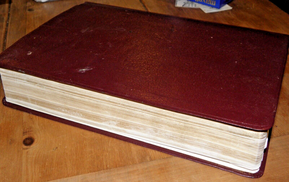 This is in good used condition. The title page is torn. I suspect this is imitation leather, since it is not labeled as bonded. Free shipping....