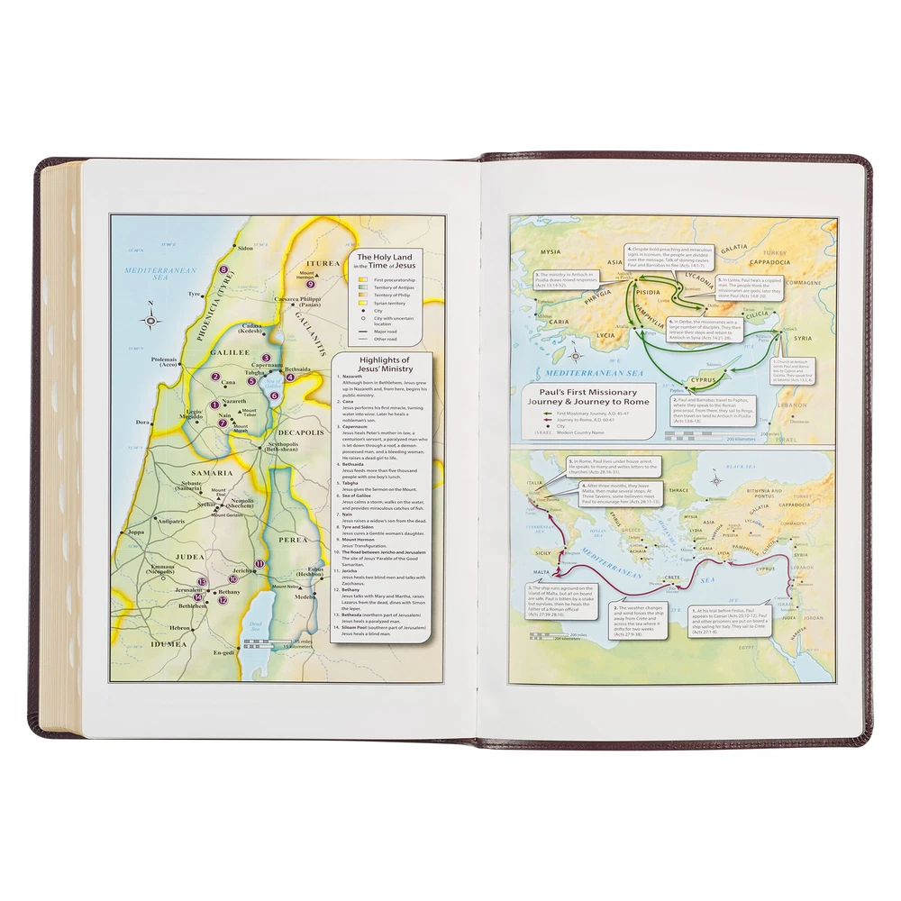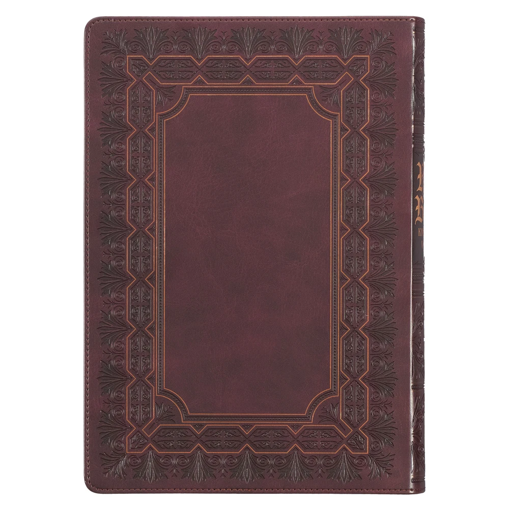Elevate your mother or grandmother's Bible study experience with the magnificent Framed Burgundy Faux Leather Super Giant Print King James Version Bible . This luxury giant print Bible with its exquisite gold-foiled cover design makes it a perfect companion for her personal Bible study sessions. Visit Storefront Contact Us View Feedback About Our Company KJV Holy Bible, Super Giant Print Faux Leather Red Letter Edition - Ribbon Marker, King James Version, Burgundy Item Details Elevate your mother or grandmother's Bible study experience with the magnificent Framed Burgundy Faux Leather Super Giant Print King James Version Bible . This luxury giant print Bible with its exquisite gold-foiled cover design makes it a perfect companion for her personal Bible study sessions. Elevate your mother or grandmother's Bible study experience with the magnificent Framed Burgundy Faux Leather Super Giant Print King James Version Bible . This luxury super giant print Bible, with its exquisite gold-foiled cover design, makes it a perfect companion for her personal Bible study sessions. The super giant print Bible features smooth front and back faux leather covers adorned with exquisite gold-foiled frames. The design is further enhanced with Greek-themed heat-debossed fern and scroll work, lending a captivating depth to its appearance. The front cover showcases a gold-foiled title presented in a stylish Old English font, complemented by a heat-debossed design and the version reference. HOLY BIBLE KING JAMES VERSION The spine of this Bible is adorned with additional heat-debossed Greek-themed fern and scroll designs, interspersed with four sets of gold-foiled faux spine ribs. The title is also elegantly presented in gold-foiled letters, adding a touch of sophistication to this remarkable book. The page edges are gilt-edged, and a convenient thumb index and a satin ribbon marker are included to aid in easy navigation and to save your spot within the Bible. With a Smyth-sewn lay-flat spine, the Bible binding is protected when opened, ensuring its durability over time. To further safeguard against wear and tear, topstitching along the edges of the covers provides added reinforcement. This Bible is a valuable study tool. It features text in easy-to-read giant print, 17-point type arranged in a double-column format. It offers a comprehensive range of study features, including a footnote cross-reference guide, a concordance, and a thematic Scripture verse finder. With the words of Christ printed in red ink, eight full-color annotated biblical maps, and a one-year Bible reading plan, it provides additional resources for in-depth study. It's important to note that this Bible utilizes the original 1769 English text, which may present subtle variations in spelling and language usage compared to modern English. However, this uniqueness adds to its authenticity and historical value. The front of this super giant print Bible features a presentation page, providing the perfect opportunity to personalize it with a heartfelt and encouraging message when presenting it as a gift. This thoughtful addition allows you to make the Bible even more meaningful and memorable for the recipient. For optimal protection, the Framed Burgundy Faux Leather Super Giant Print King James Version Bible with Thumb Index is thoughtfully packaged in a sturdy box with a hinged lid. This ensures that the Bible remains secure and well-preserved during storage and transportation. Celebrate a cherished milestone with the gift of a Bible, and make this Christmas extra special for your grandmother with the Framed Burgundy Faux Leather Super Giant Print King James Version Bible with Thumb Index . Its exquisite design and thoughtful features make it an ideal gift choice, symbolizing love, faith, and the joy of the holiday season. Burgundy cover with heat-debossed Greek-themed designs and gold-foiled frames Burgundy faux leather Flexcover Classic King James Version 1769 Oxford Standardized Revision of the 1611 King James Bible Full-size Bible Gold-foiled titles Thumb indexing tabs Satin ribbon marker 1804 gilt-edged pages Presentation page Epistle dedicatory letter included Lay-flat Smyth-sewn binding Double-column format Words of Christ in red Concordance Footnote cross-referencing Thematic Scripture verse finder One-year Bible reading plan 8 full-color maps Super giant print 17-point type Packaged in a full-color printed hinged gift box Size: 10.6" x 7.5" x 1.6" (269 x 191 x 41mm) Return Policy To ensure complete satisfaction of our customers, we offer a 30 day return policy for all orders. Please reach out to us if you have any questions and one of our friendly customer service representatives will reply within 24 hours. This excludes weekends and holidays. Shipping Information All orders are fulfilled and shipped within 1-2 business days excluding holidays and will be shipped via standard economy shipping. Please do not hesitate to reach out with any questions. Please Note: Our hours of operation are Monday-Friday, 8am-5pm (CST). All orders received before 2pm (CST) will be processed & shipped within 1-2 business days.* Average transit times are 2-7 business days to the contiguous 48 United States and the District of Columbia. (*Does not apply to holidays or special orders.) Shop Our Storefront | View Feedback | Contact Us | Add Us to Your Favorites