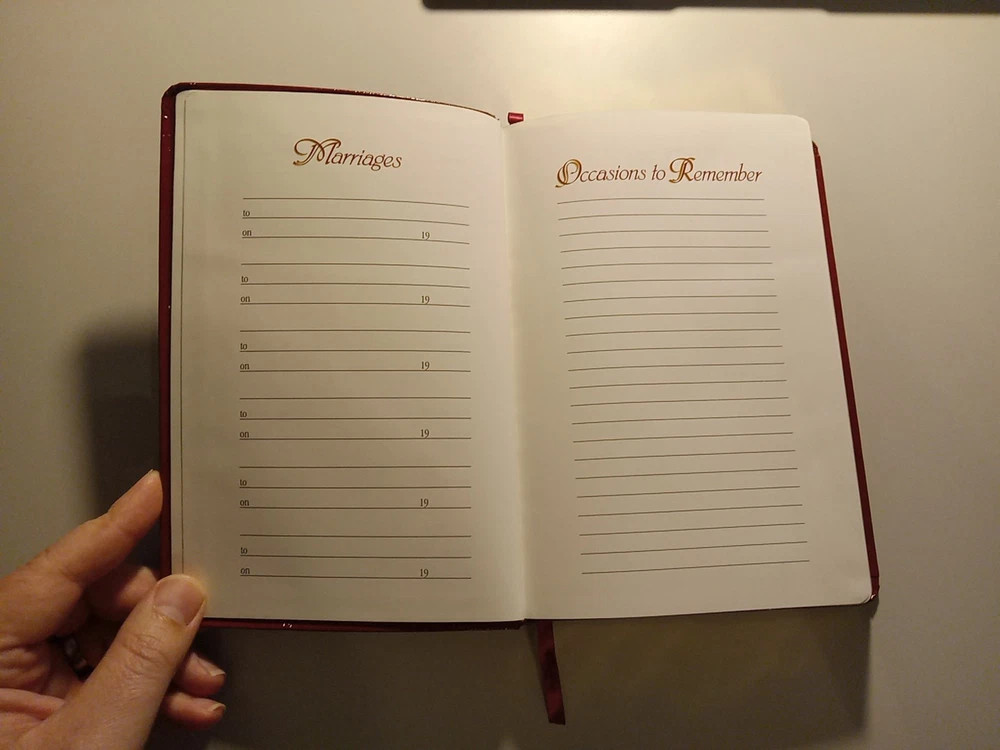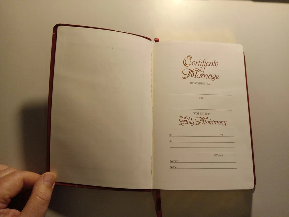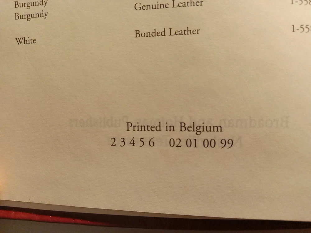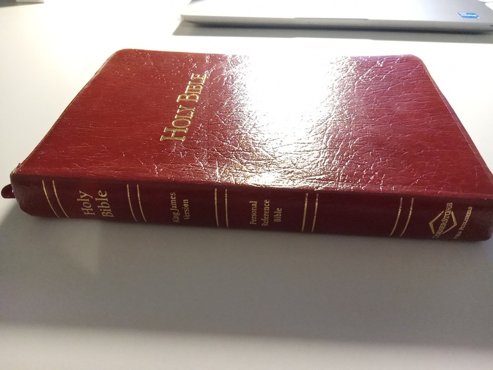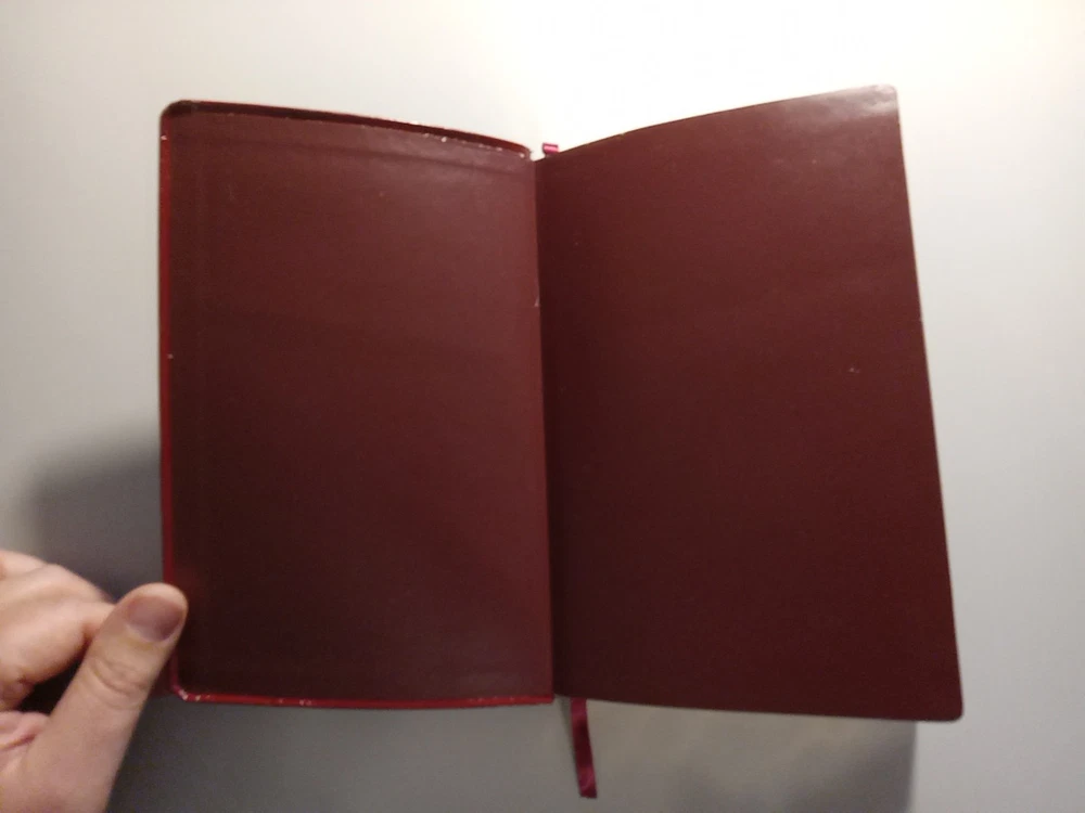 KJV Cornerstone Personal Reference Bible (Burgundy Bonded Leather) This Bible has no markings of any kind throughout. Blemishes include: Front cover has crease Gilt has larger blemish on side Unknown portion of presentation section removed The Smyth sewn binding is solid. This would be an outstanding block for a rebind. The Belgium paper is highly opaque and it is very comfortable on the eyes and easy to read. Possible 8 to 9 point font, highly readable. One ribbon Words of Christ in red. Does not include box.