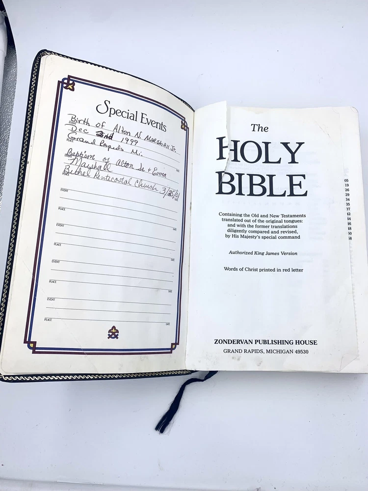 Some tears, pen marks, and highlighting on pages. Signs of wear but still in good condition. This KJV Holy Bible from Zondervan published in 1994 is a must-have for anyone interested in religion and spirituality. With its leather-bound cover and red-letter concordance references, it is a vintage piece that is perfect for adults of all ages. The book is part of the Zondervan KJV Holy Bible series and is written in English, with no inscriptions or modifications. It is a non-fiction narrative type book and its subject revolves around religion and beliefs. With its features, genre, and topic, this book is a great addition to any religious or spiritual book collection.