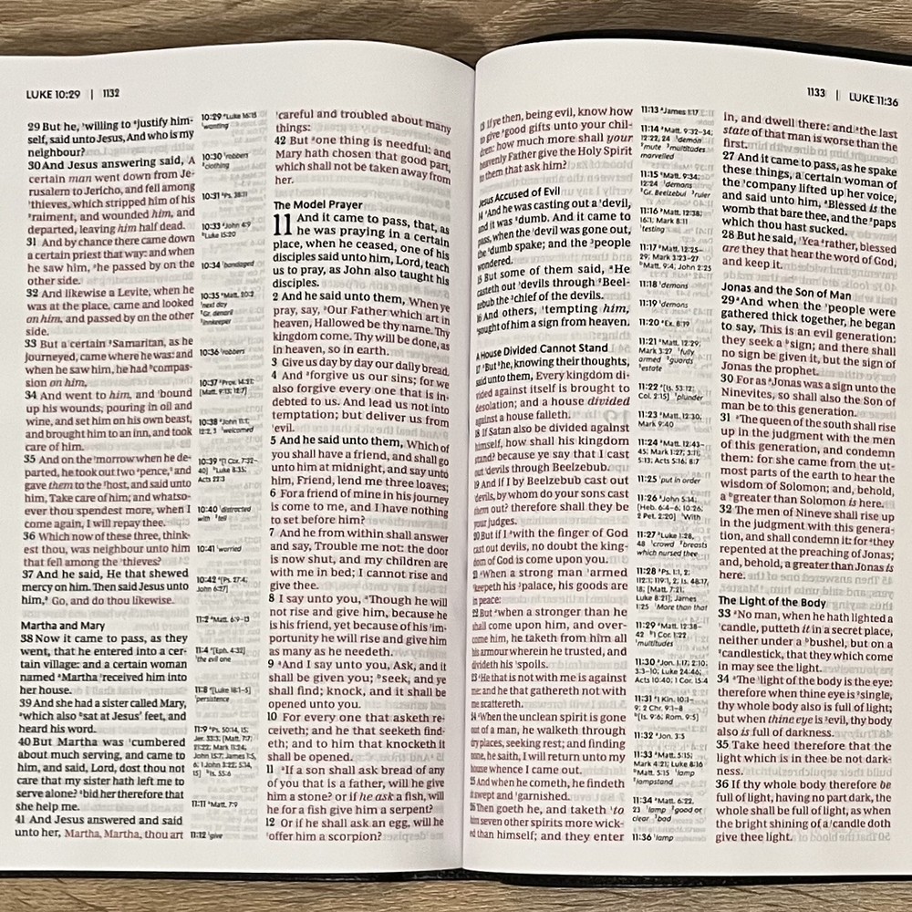 The KJV Center-Column Reference Bible features a reading experience designed to embody the best advancements in modern Bible typography. More Features: • Over 73,000 center-column cross-references and translator notes • Book introductions • Clear and readable 9.5-point KJV Comfort Print • Thumb-indexed Featured Articles: • "About the Bible" article • "How to Study the Bible" article • "Getting to Know God" article • "30 Days Getting to Know God" reading plan • "30 Days Getting to Know Jesus" reading plan