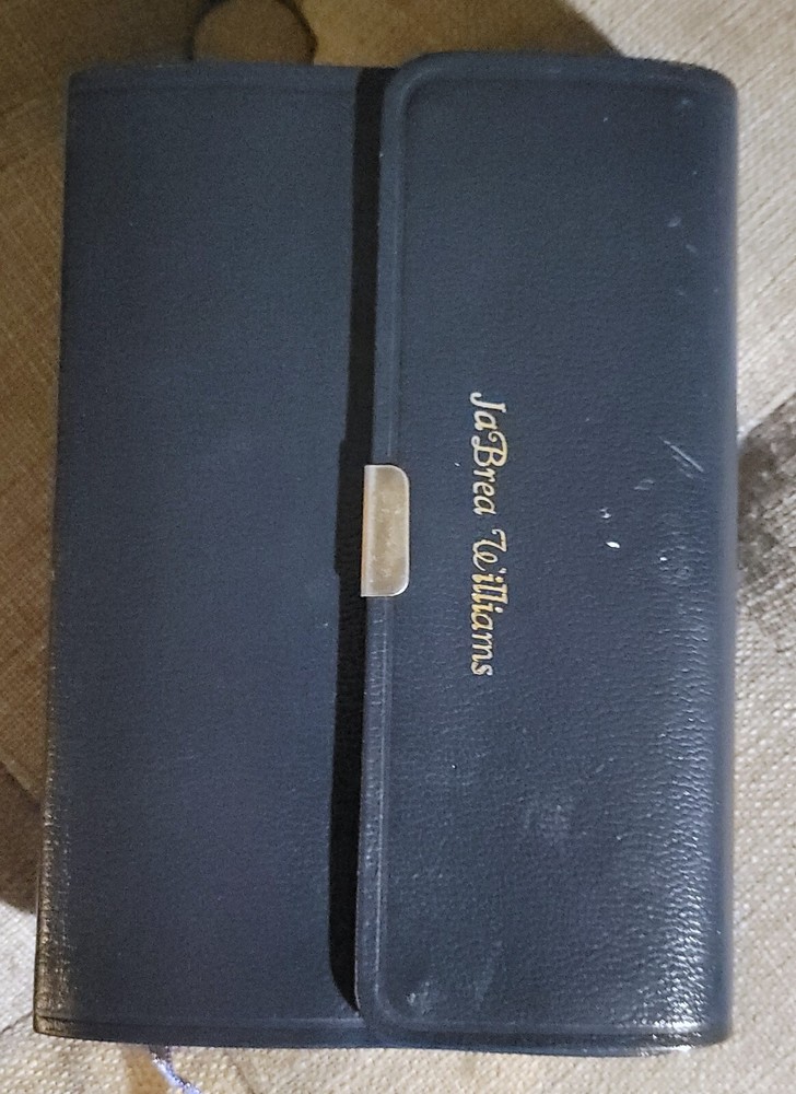 Blue Bonded Leather with Magnetic Snap Flap Name embossed on front cover, light handling wear to covers. Otherwise unmarked and appears unused All Books are Carefully and Properly Packed. Shipped in a...