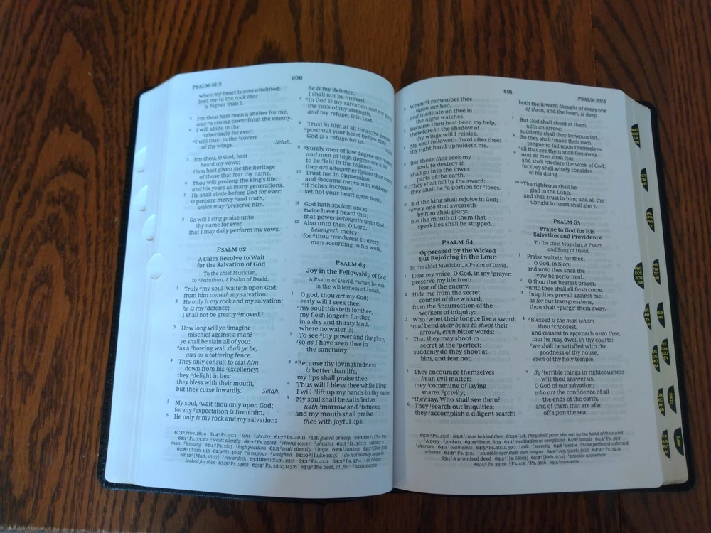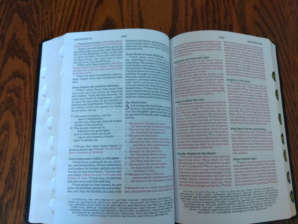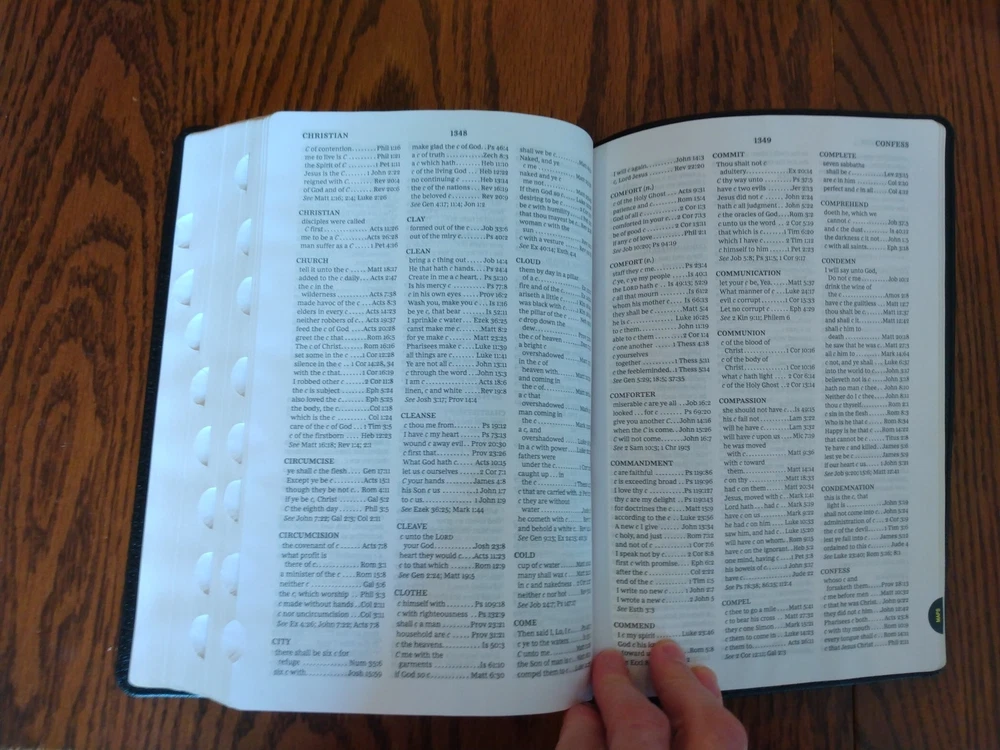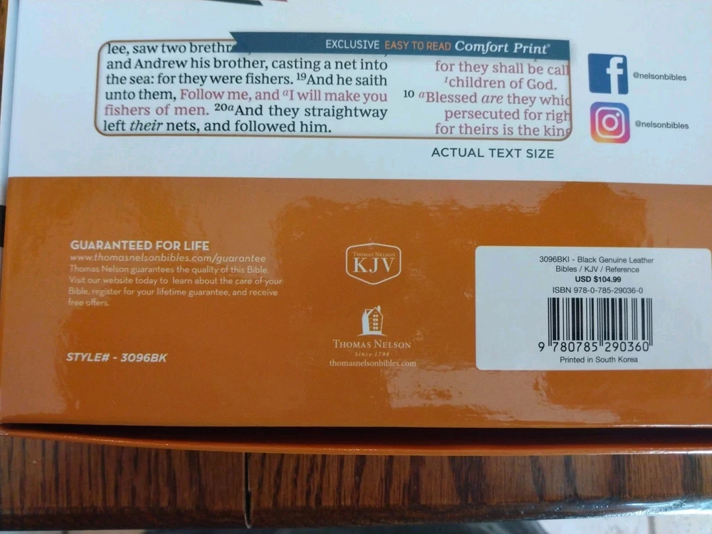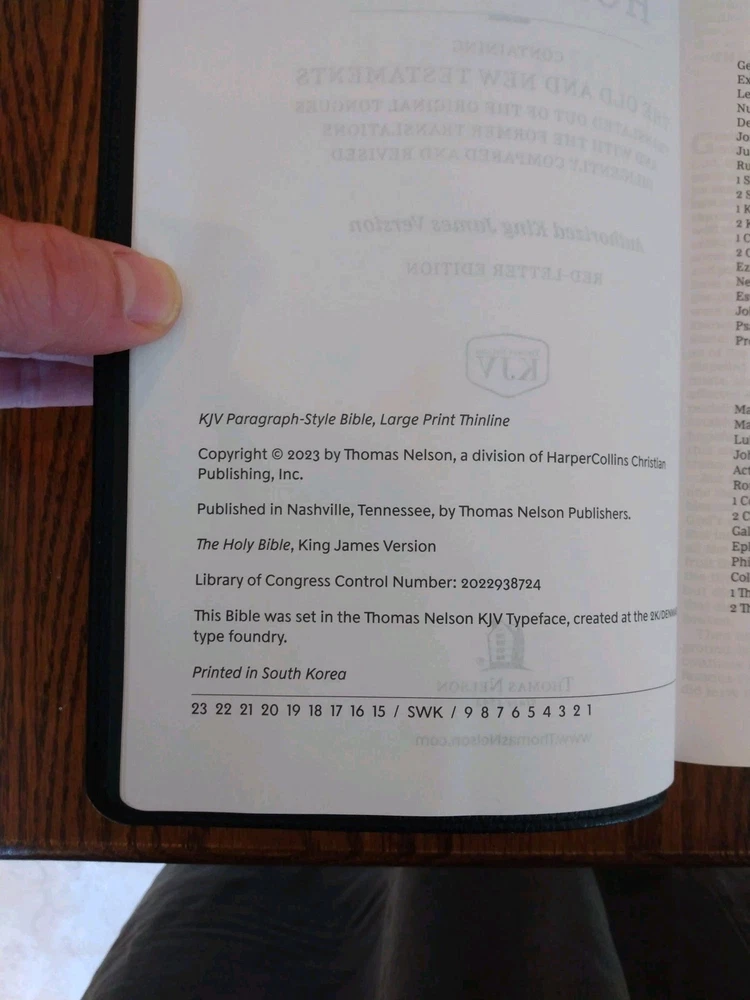 KJV LARGE PRINT Thinline Bible Thumb Indexed ~ $104.99 Retail ~ Genuine Leather Font/Text size is 10 point Dimensions: 9.25 X 6.25 (inches) x 1.25" approx Red letter for Christ's words Thumb Indexed Product Description God's Word is brought to you in a large text with a thin book profile in the KJV Paragraph-style Large Print Thinline Bible and, most importantly of all, presents the hope of Scripture in a format that helps you keep your place in the text. Not only is the translation in the venerable 1611 King James Version, but each verse of scripture is given it's own paragraph, with the purpose of helping your eyes keep track of where you are on the page and keeping your engaged in the biblical story. Features: Clear and readable 10-point KJV Comfort Print Line-matched double column text Bible book introductions Words of Christ in red Over 22,000 translator notes Over 43,000 cross-referenced passages Concordance One-year Bible Reading Plan The Parables of Jesus Christ chart The Miracles of Jesus Christ chart 8 pages of full-color maps 2 satin ribbons Product Information Title: KJV Paragraph-style Large Print Thinline Bible, Comfort Print--genuine leather, black (indexed) Format: Genuine Leather Number of Pages: 1376 Vendor: Thomas Nelson Publication Date: 2023 Dimensions: 9.25 X 6.25 (inches) Weight: 2 pounds 7 ounces ISBN: 0785290362 ISBN-13: 9780785290360 References: Cross References Text Layout: Double Column Text Color: Red Letter Text Size: 10 Point Thumb Index: Yes Ribbon Marker: Yes Feel free to ask questions. I try to return and answer your questions in a timely manner and as soon as I am able. NO RETURNS. Please buy responsibly. Visit my eBay store at aboundingjoy66